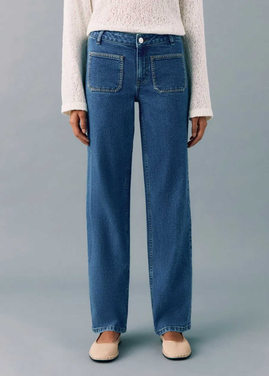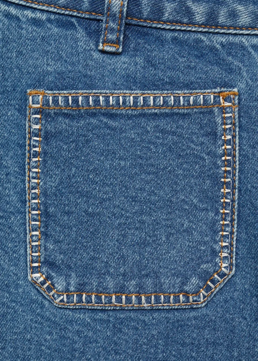 OpisTkanina bawełniana w dżinsowym stylu. Model długi. Niski stan. Model prosty. Dwie kieszenie nakładane z przodu. …