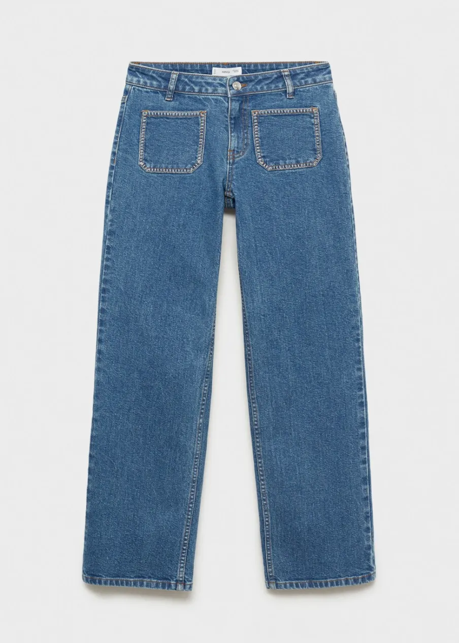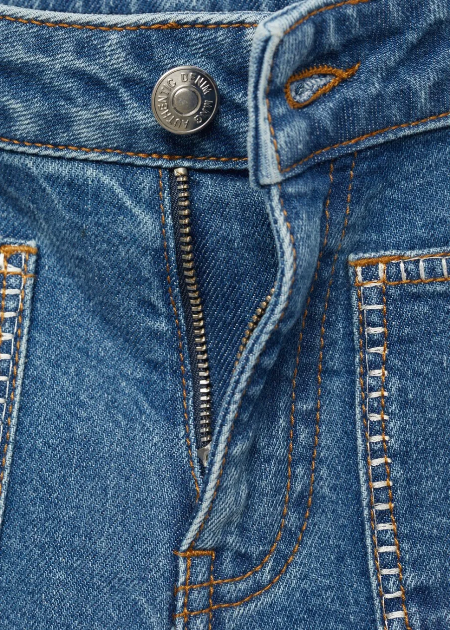 Tkanina bawełniana w dżinsowym stylu. Model długi. Niski stan. Model prosty. Dwie kieszenie nakładane z przodu. Dwie kieszenie nakładane z tyłu. Szlufki. Zapięcie na suwak i guzik.