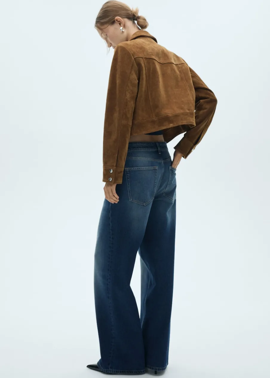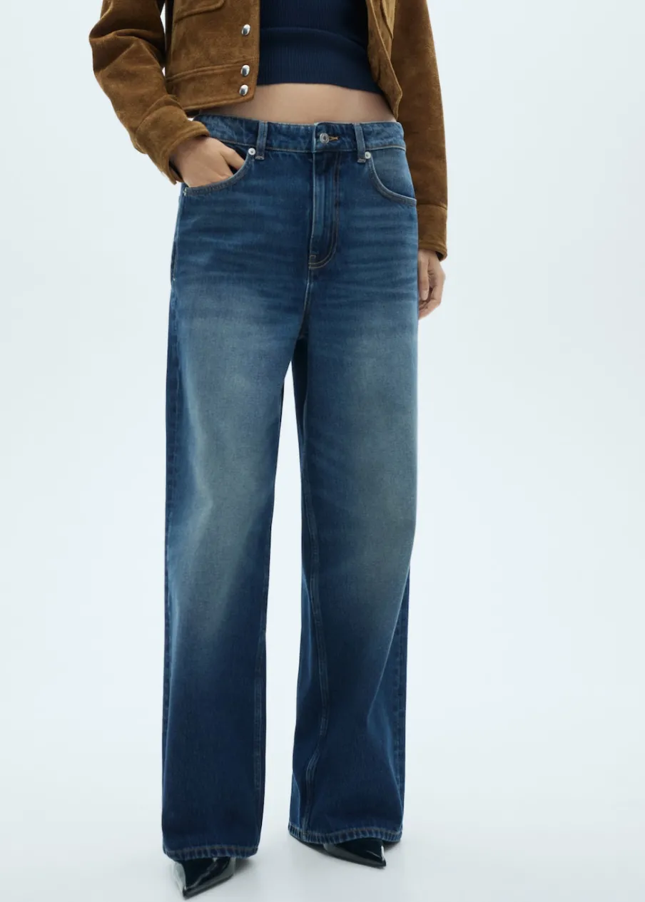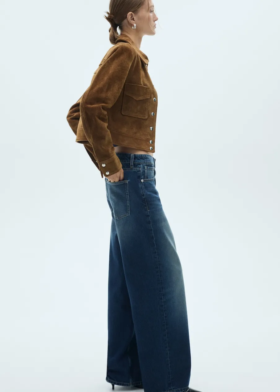 Tkanina bawełniana w dżinsowym stylu. Model długi. Krój loose. Fason wideleg. Niski stan. Szlufki. Pięć kieszeni. Zapięcie na suwak i guzik. Total look. Długość wewnętrzna 77 cm. Modelka ma 177 cm wzrostu i nosi rozmiar S/36.