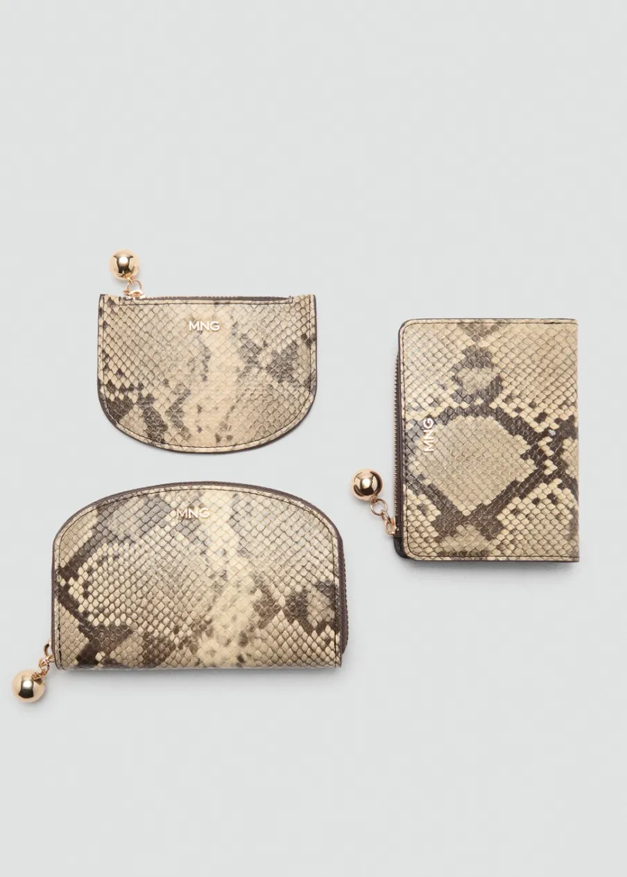 Mała wielkość. Wzór skóry krokodyla. Kilka przegródek na karty. Kieszeń na zamek. Tłoczone logo. Bez zapięcia.