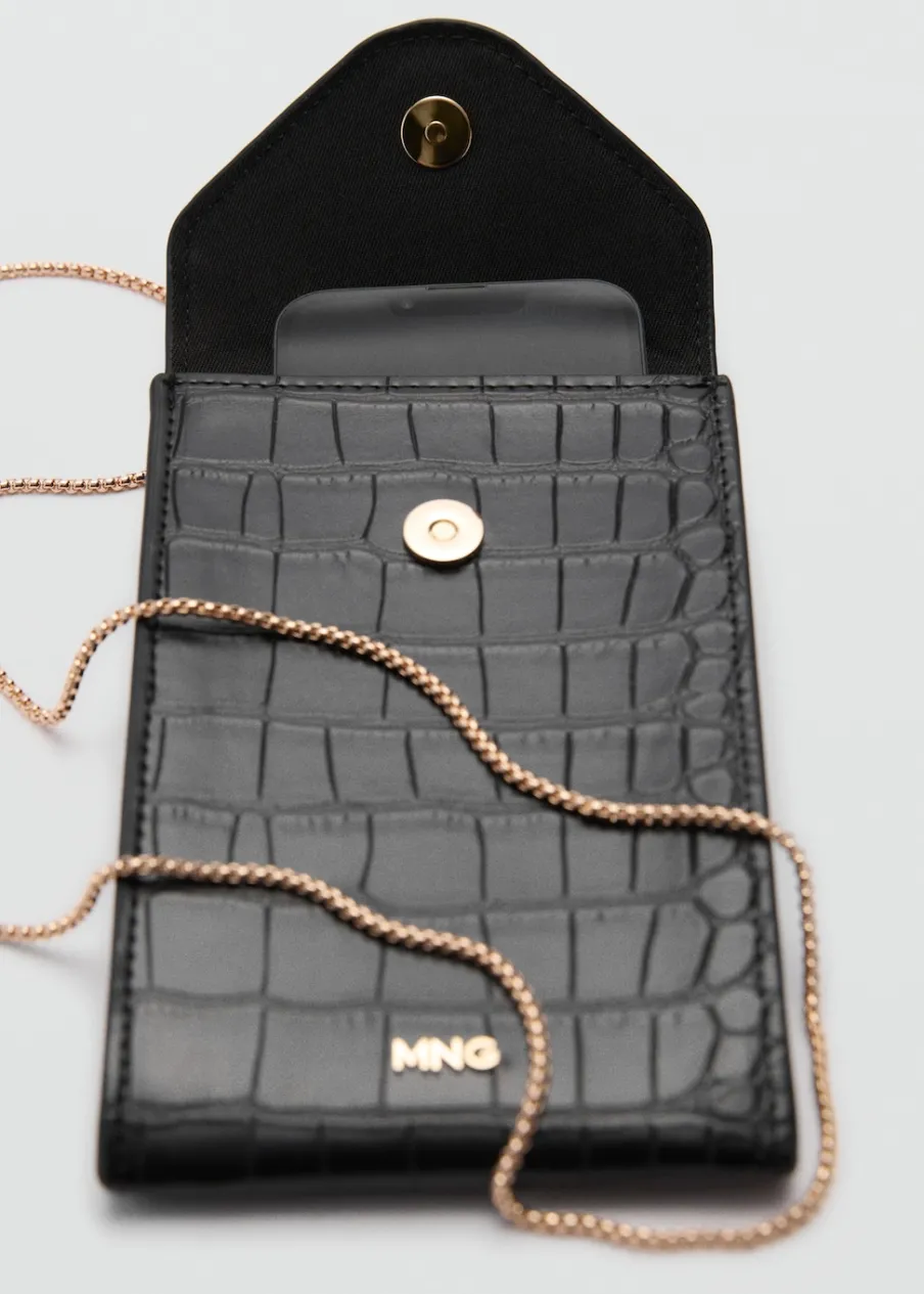 Mała wielkość. Efekt krokodylej skóry. Zwierzęcy wzór. Długi pasek z łańcucha. Klapa z zapięciem na magnes. Wewnętrzna podszewka.