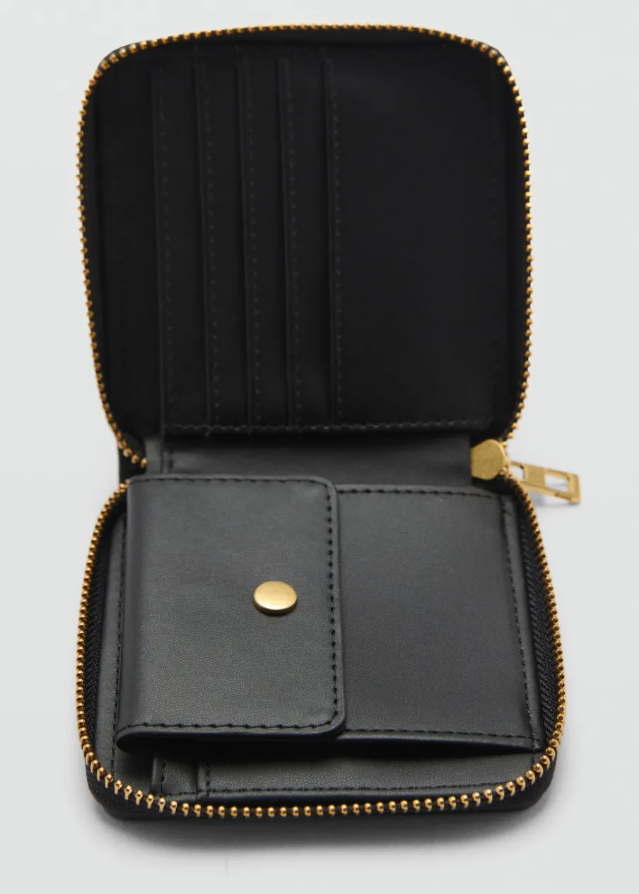 OpisEfekt skóry. Średnia wielkość. Kilka przegródek na karty. Zapięcie na suwak. Wewnętrzna kieszeń. Płaska kie…