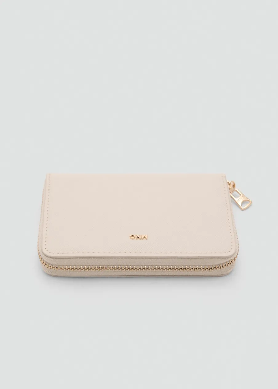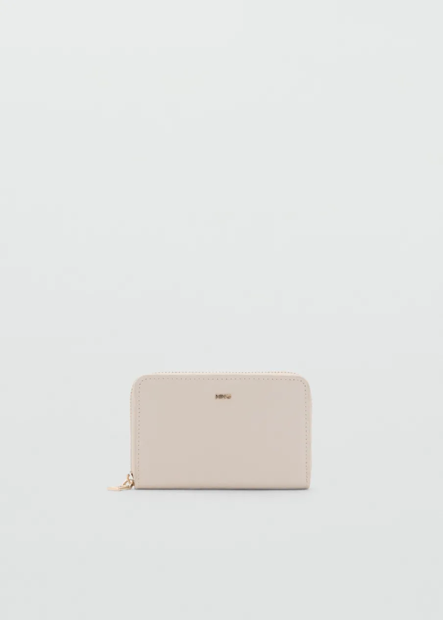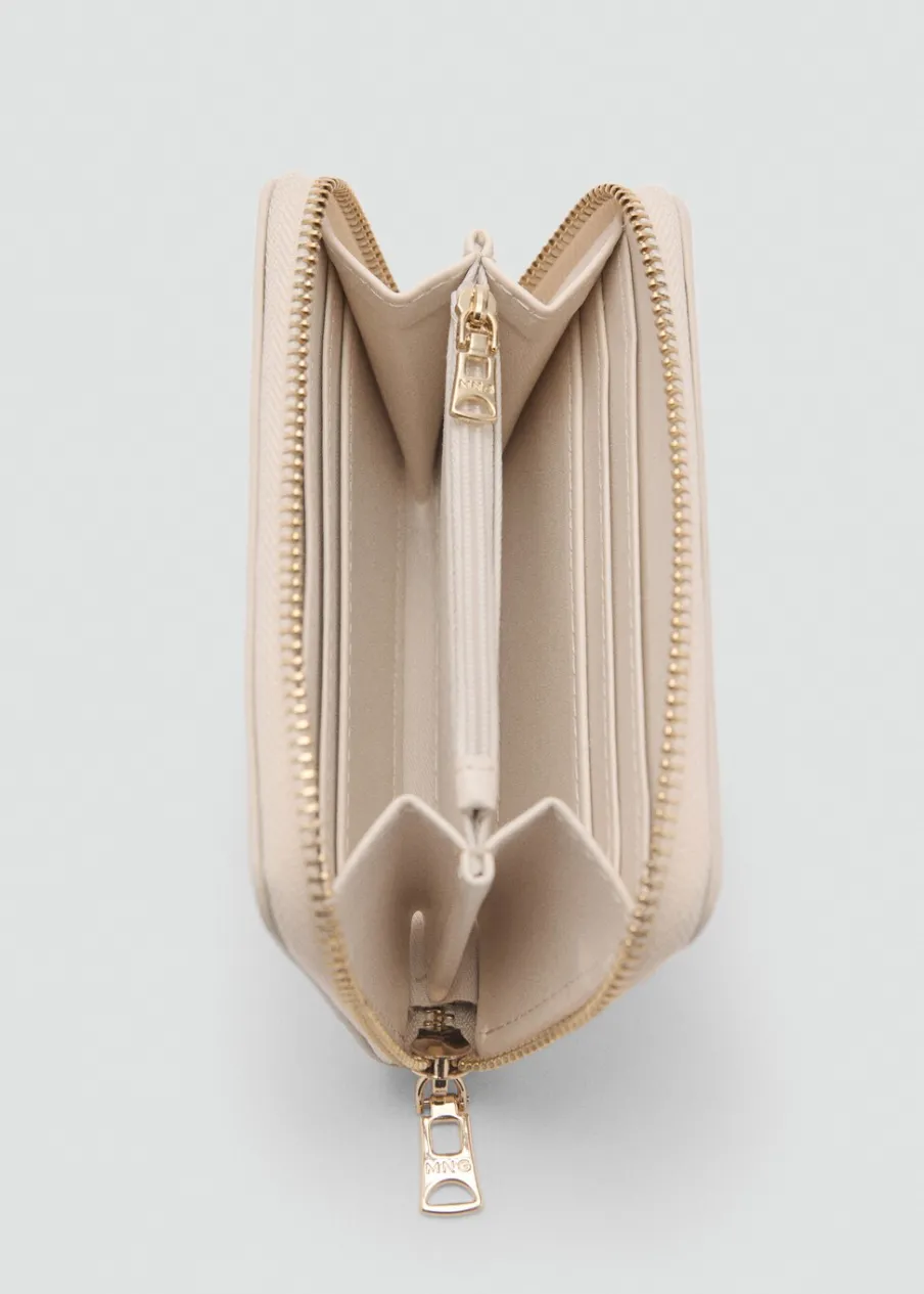 Średnia wielkość, Efekt skóry, Kilka przegródek na karty, Wewnętrzna kieszeń zapinana na suwak, Zapięcie na suwak, Tłoczone logo