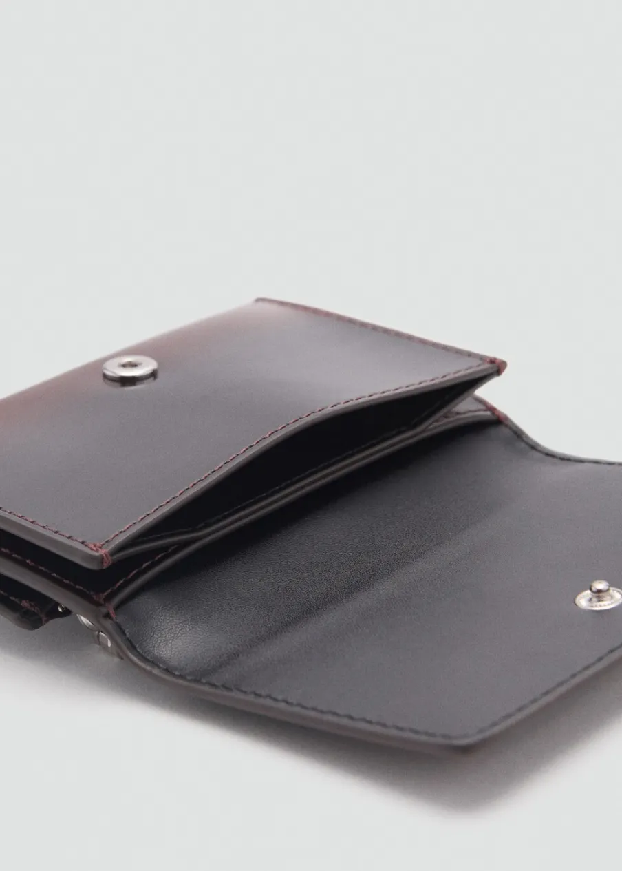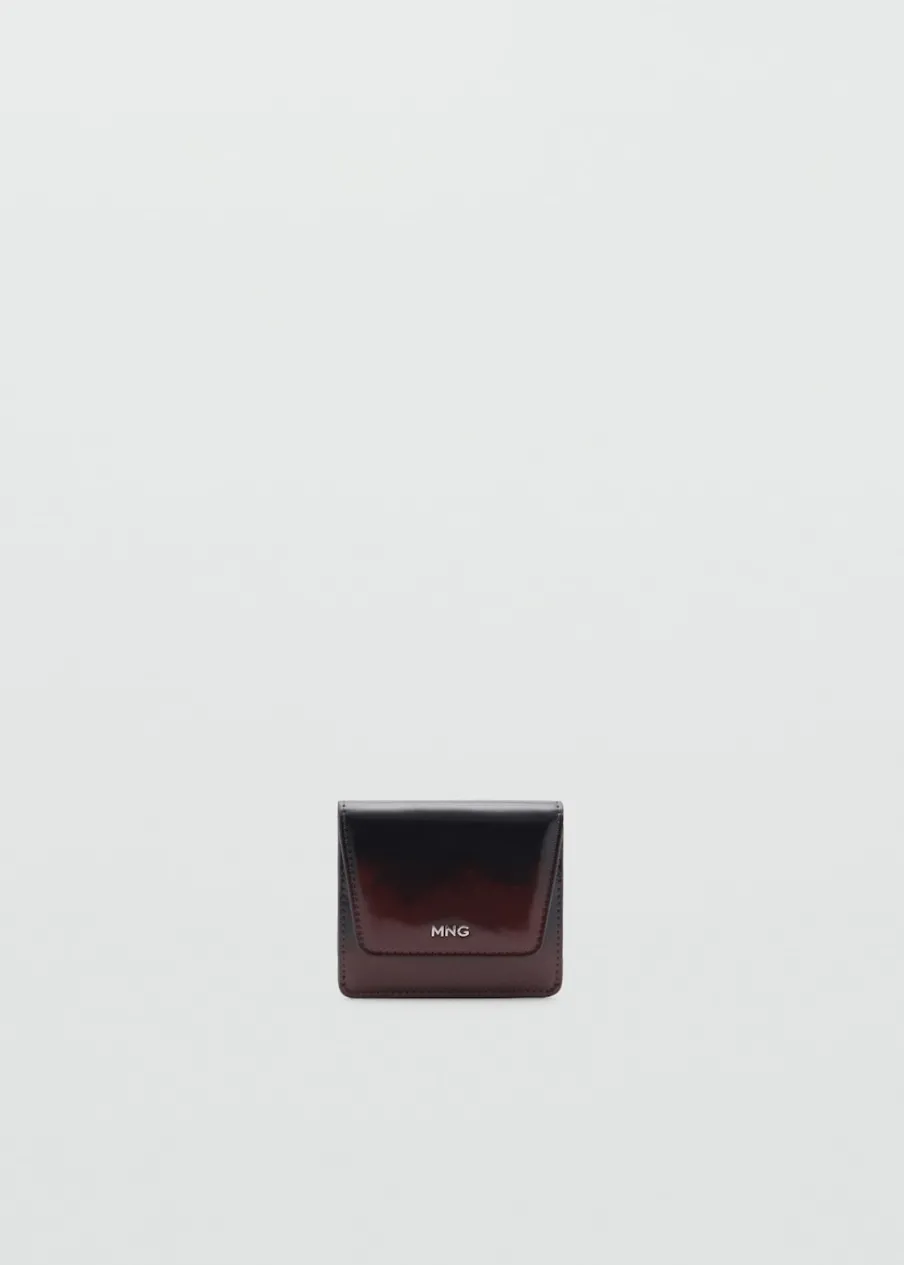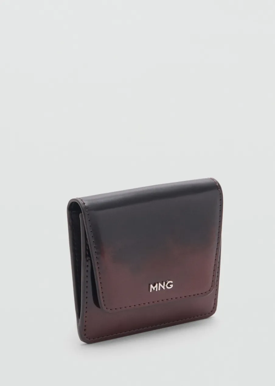 Cieniowany efekt. Mała wielkość. Zapięcie na klapę z zatrzaskiem. Dwie kieszenie wewnętrzne. Kieszeń na zamek. Tłoczone logo.