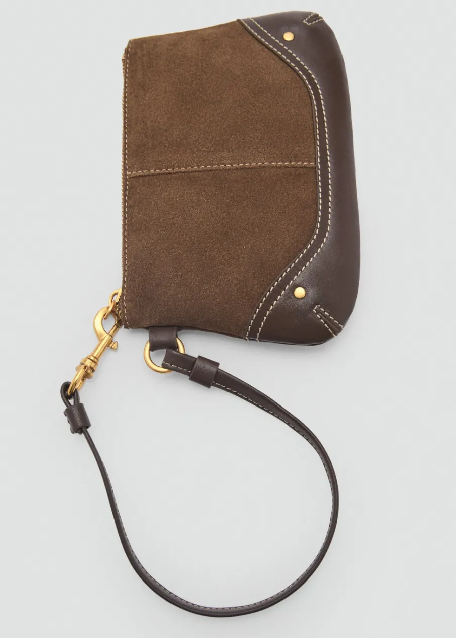 100% skóra bydlęca. Dwoina skórzana. Średnia wielkość. Uchwyt do ręki. Krótki uchwyt. Kontrastowy detal. Zapięcie na suwak. Metalowy element. Wewnętrzna podszewka.