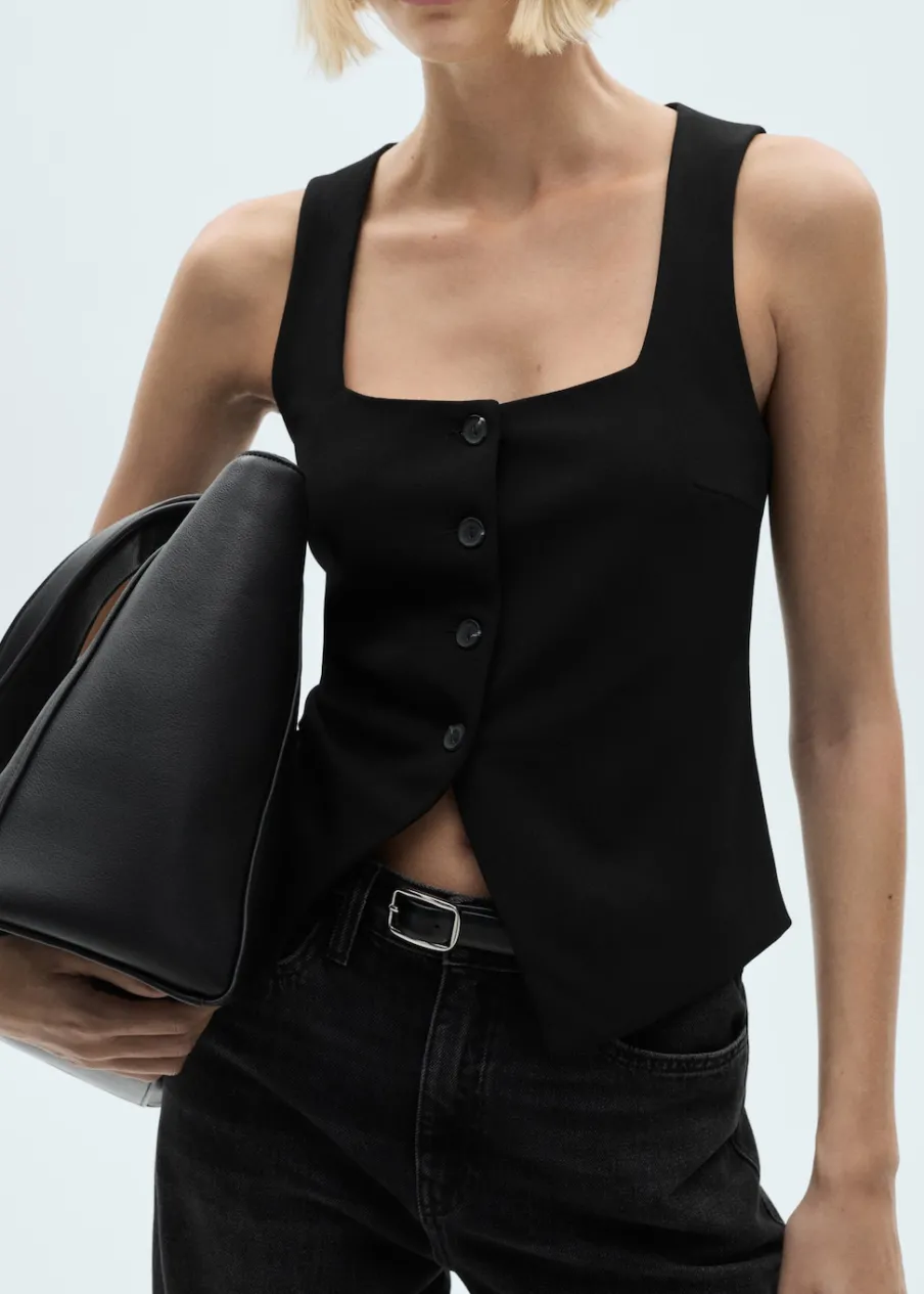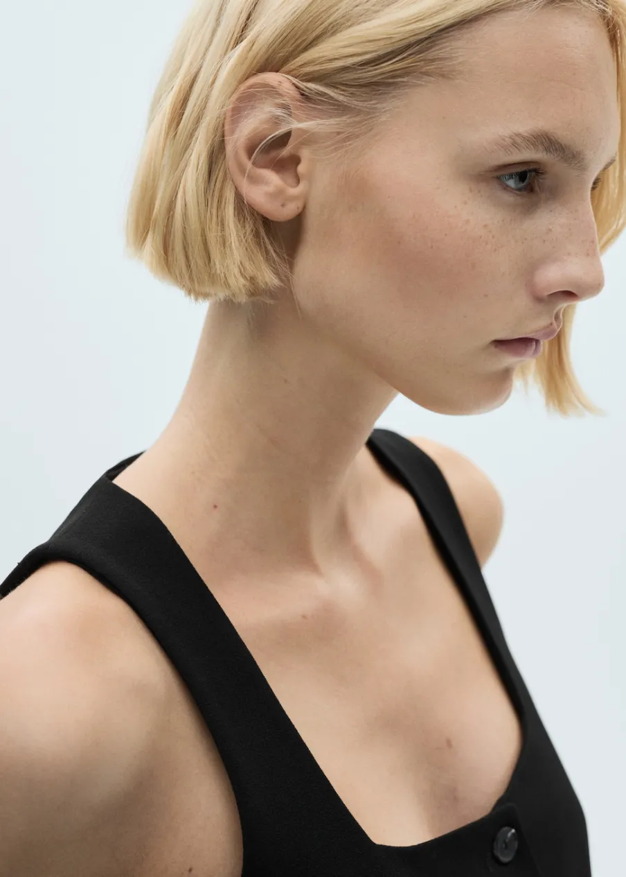 Model prosty. Kwadratowy dekolt. Szerokie ramiączka. Zapięcie z przodu na guziki. Wewnętrzna podszewka. Modelka ma 178 cm wzrostu i nosi rozmiar S/36. Modelka ma 179 cm wzrostu i nosi rozmiar S/36.