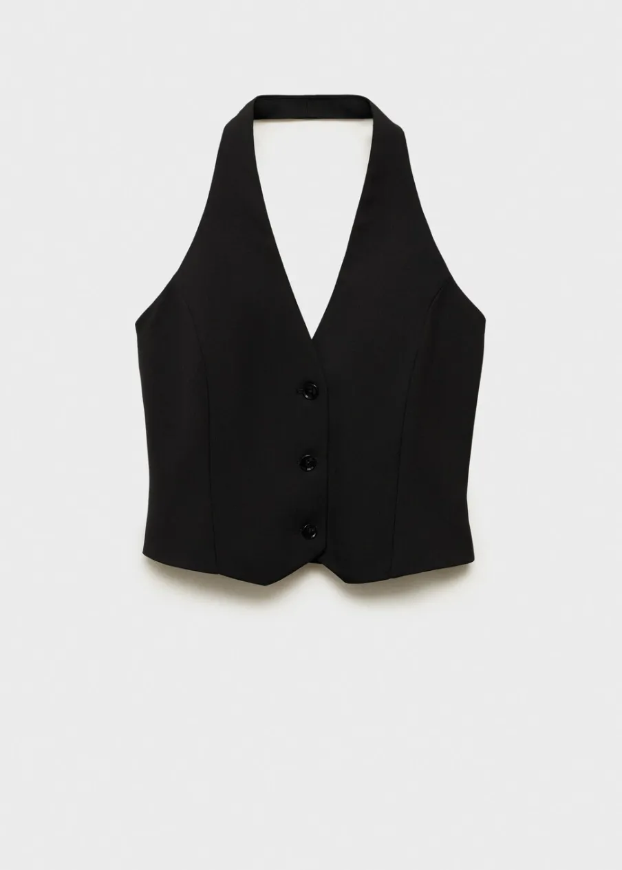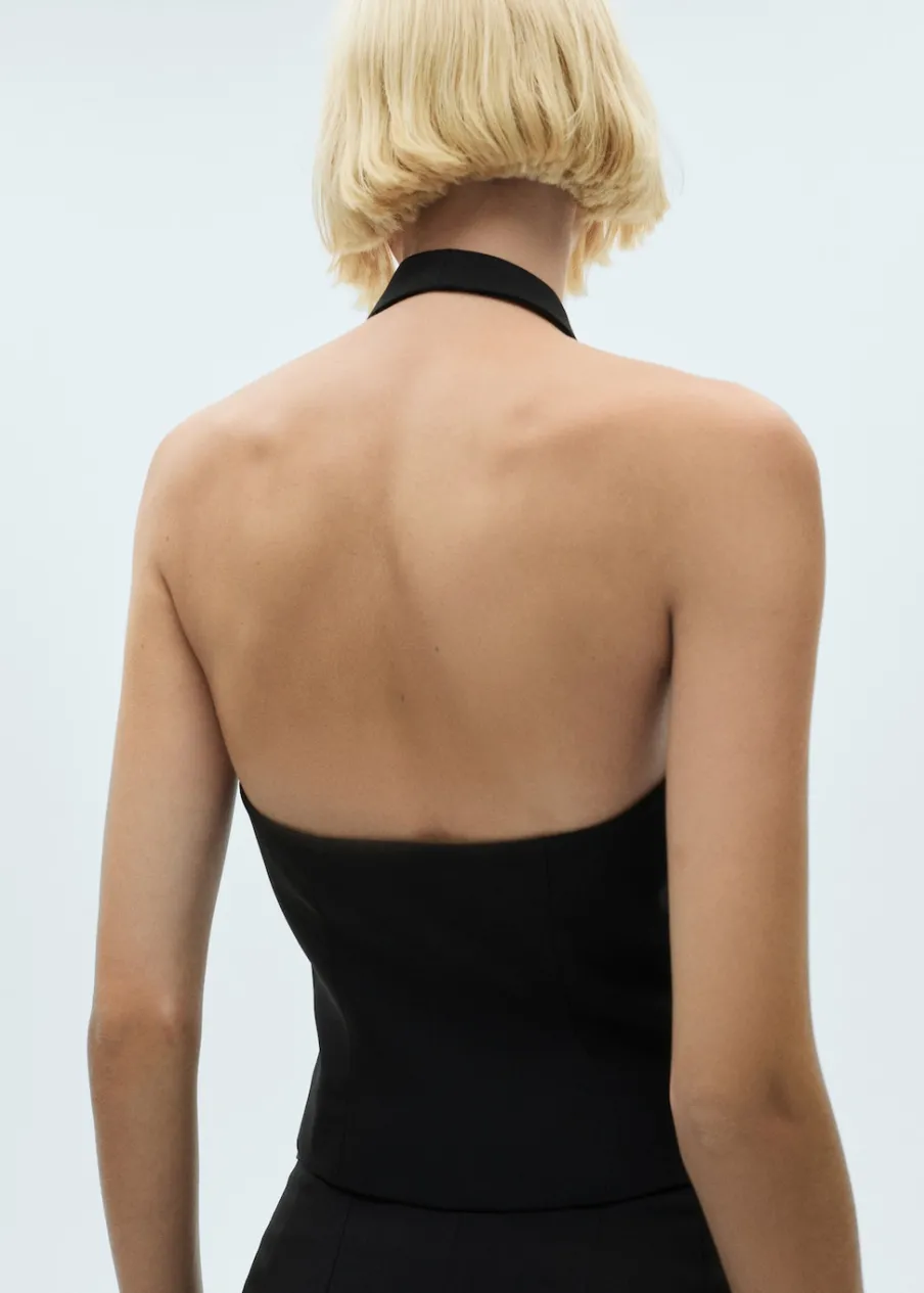 OpisDeseń crop. Dekolt V. Dekolt w stylu halter. Plecy z wycięciem. Zapięcie z przodu na guziki. Wewnętrzna podszewk…