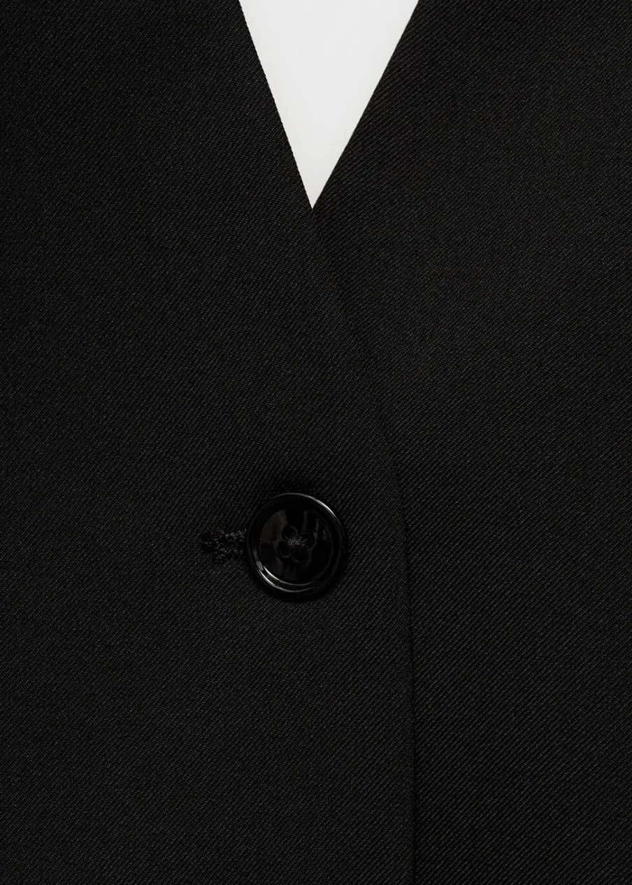 Deseń crop. Dekolt V. Dekolt w stylu halter. Plecy z wycięciem. Zapięcie z przodu na guziki. Wewnętrzna podszewka. Total look. Kolekcja wizytowa. Modelka ma 178 cm wzrostu i nosi rozmiar S/36.