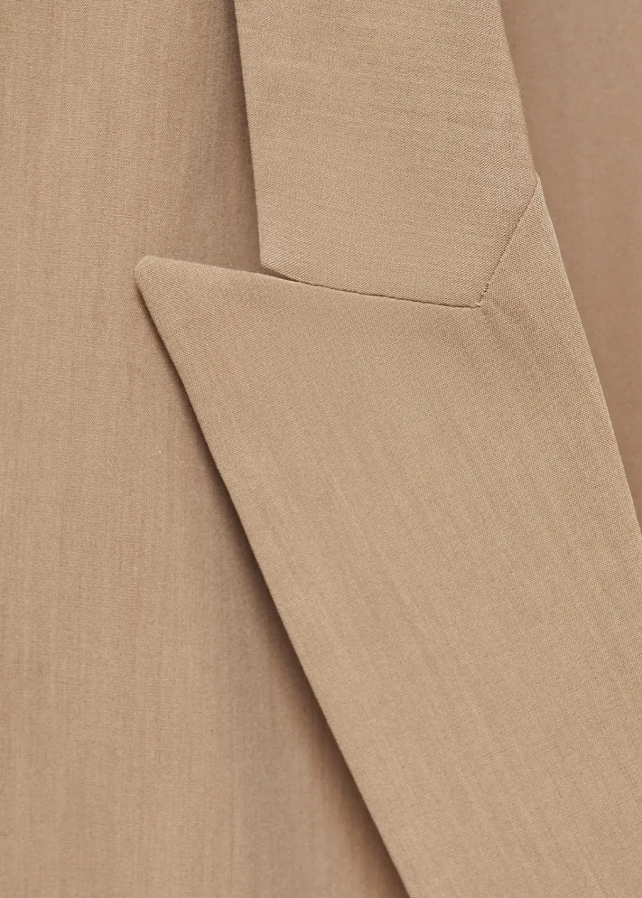 OpisLejąca tkanina. Fason garniturowy. Dekolt w szpic z kołnierzykiem. Dwie kieszenie z wypustkami z przodu. Total loo…