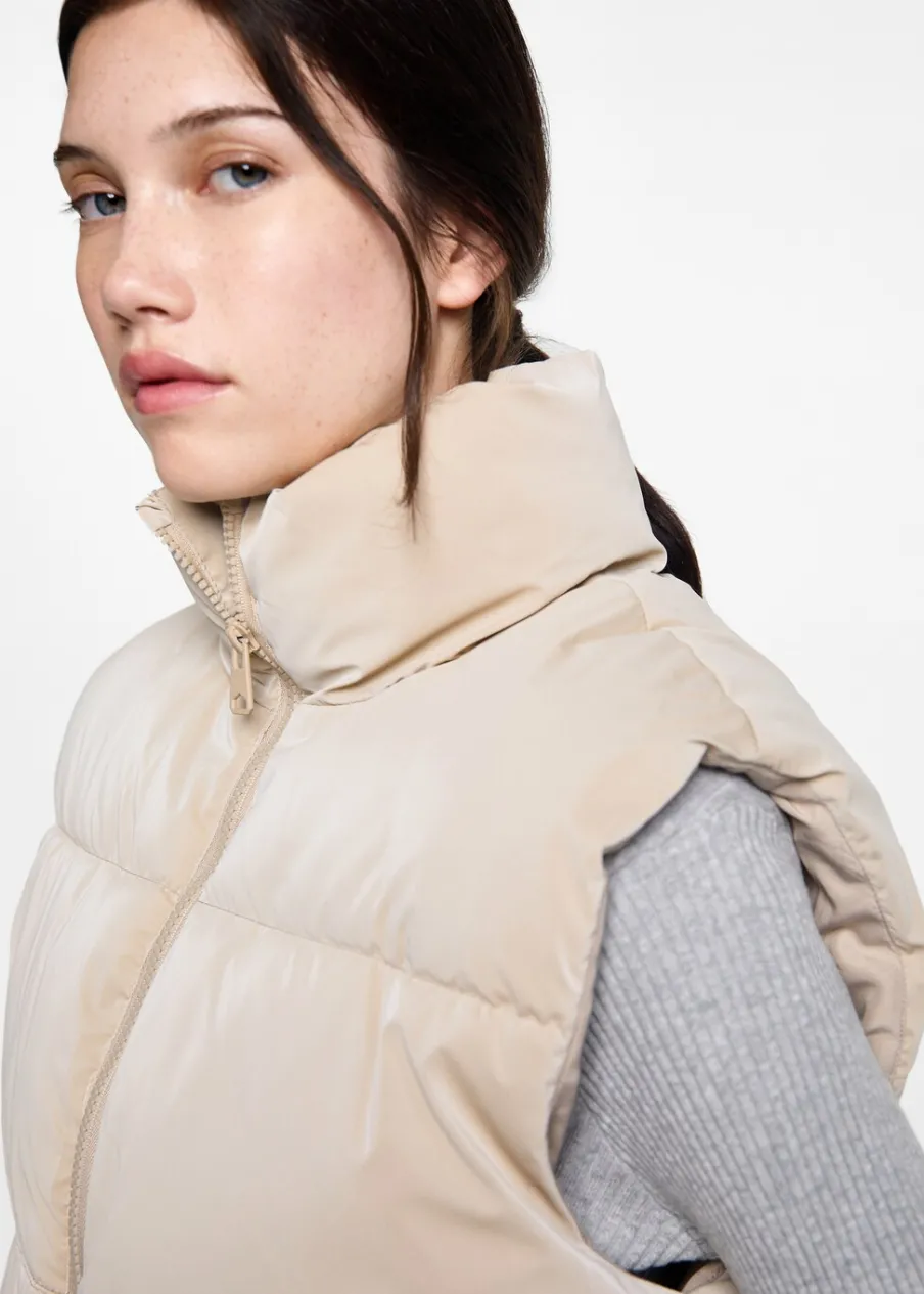 Model pikowany. Model prosty. Golf. Dwie kieszenie boczne. Zapięcie na suwak. Modelka ma 172 cm wzrostu i nosi rozmiar M.