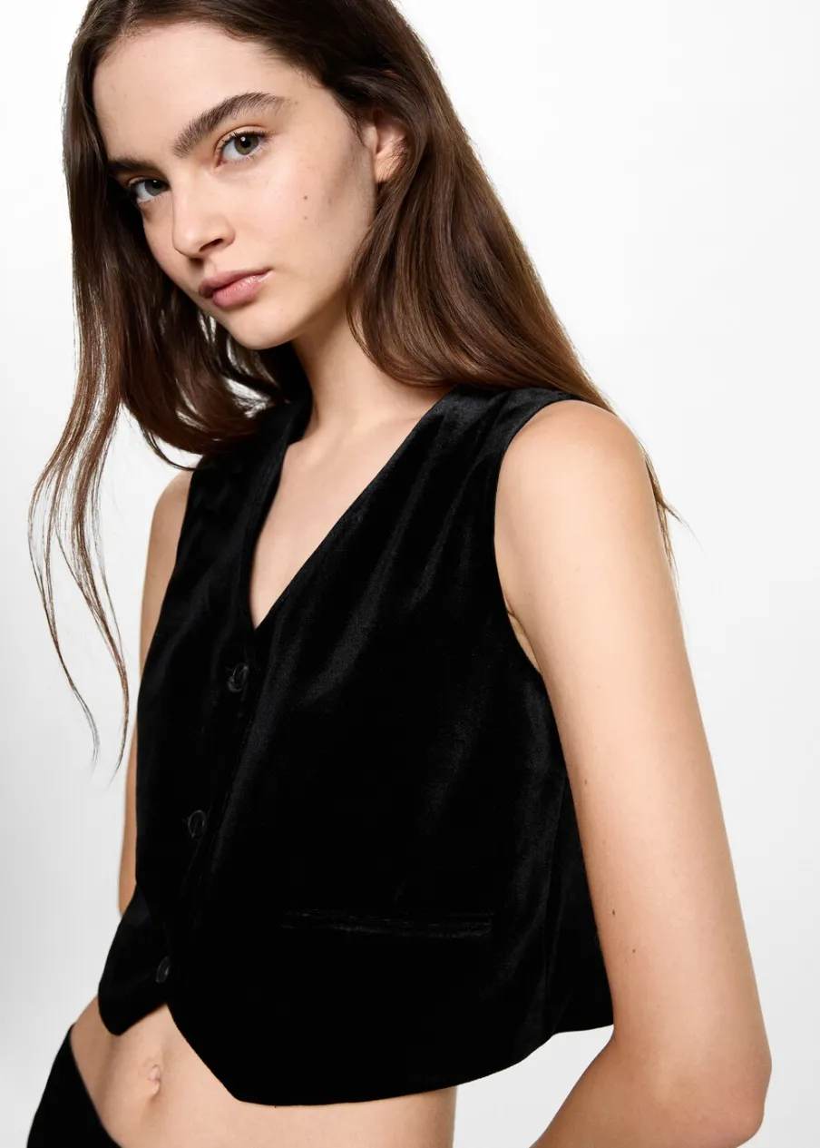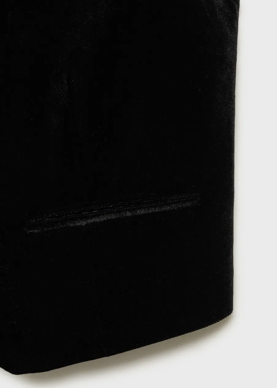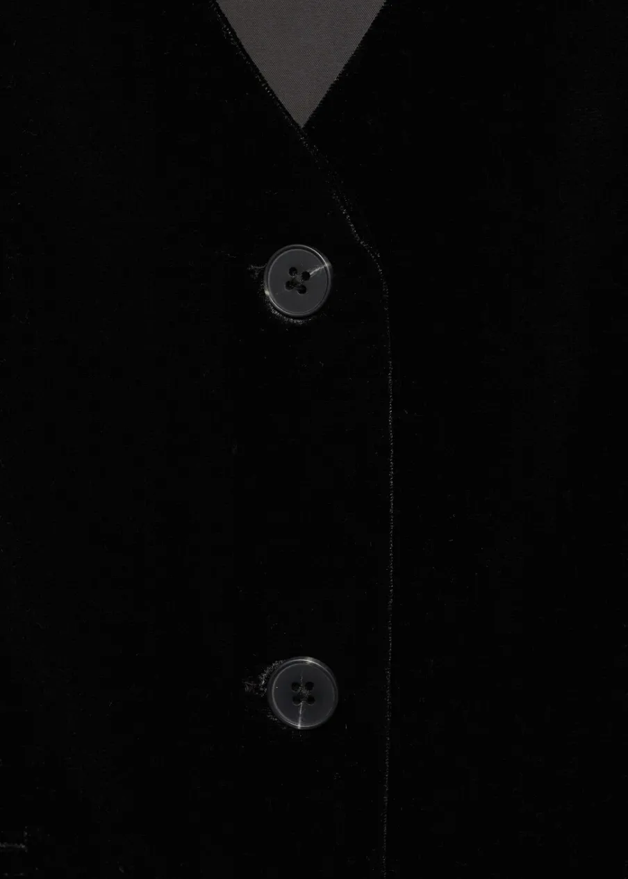 Kolekcja wieczorowa i imprezowa. Aksamitna tkanina. Model prosty. Dekolt V. Zapięcie na guziki z przodu. Ozdobne kieszenie.