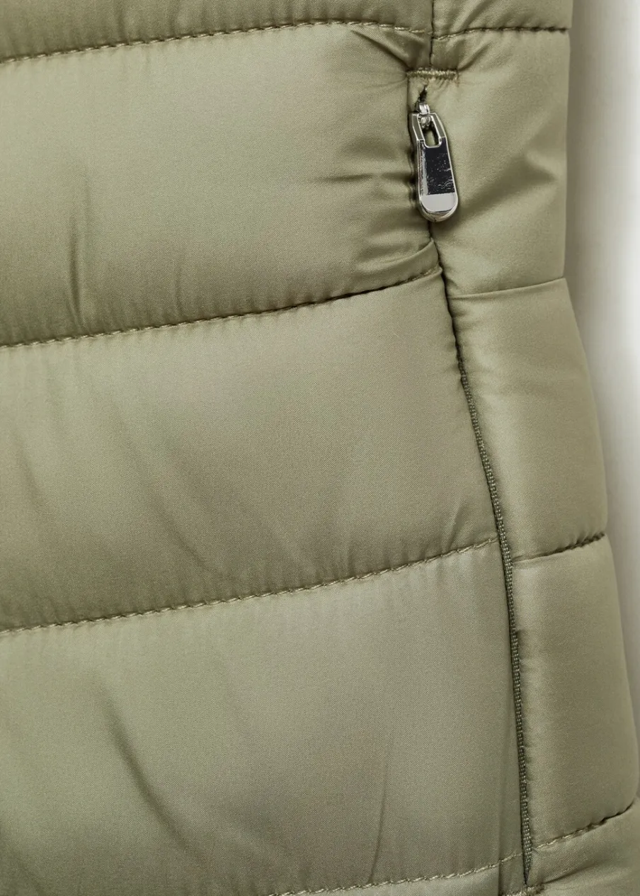 Pikowana tkanina. Slim-fit. Krótki krój. Model prosty. Okrągły dekolt. Bez rękawów. Zapięcie na zamek z przodu. Wewnętrzna podszewka. Wypełnienie/podszewka: wypełnienie. Modelka ma 179 cm wzrostu i nosi rozmiar S/36.