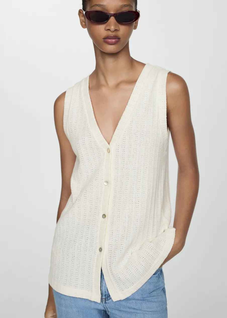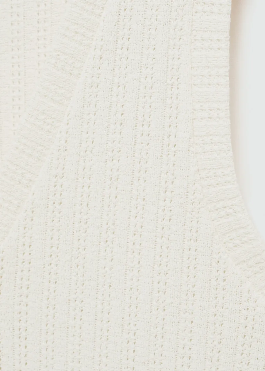 Tkanina mieszanka bawełny. Model prosty. Model długi. Dekolt V. Bez rękawów. Total look. Sezon festiwalowy. Dostępne w Plus Size. Szydełkowa tkanina. Zapięcie na guziki z przodu.