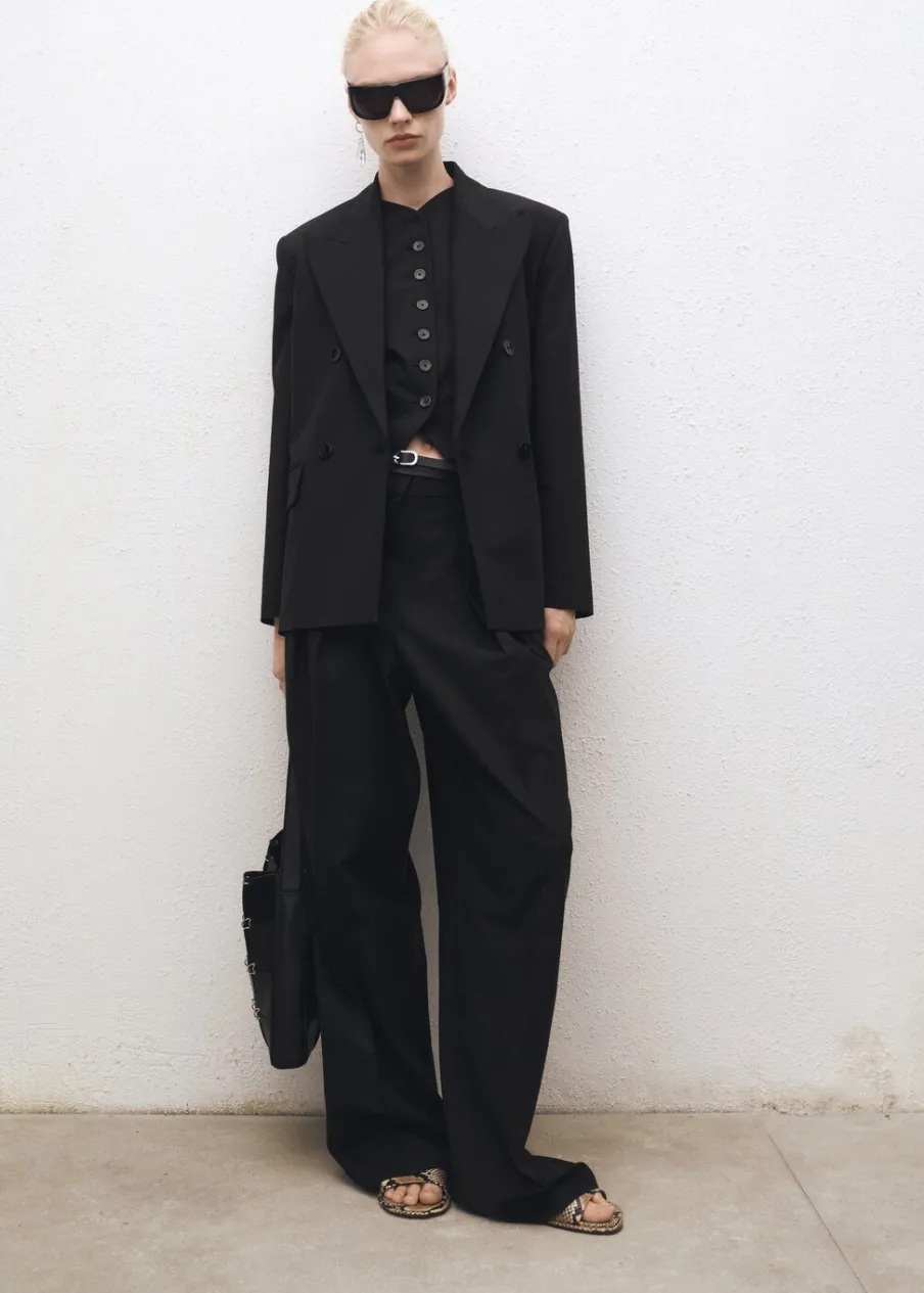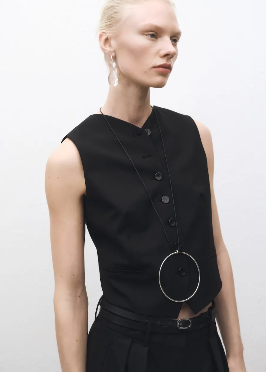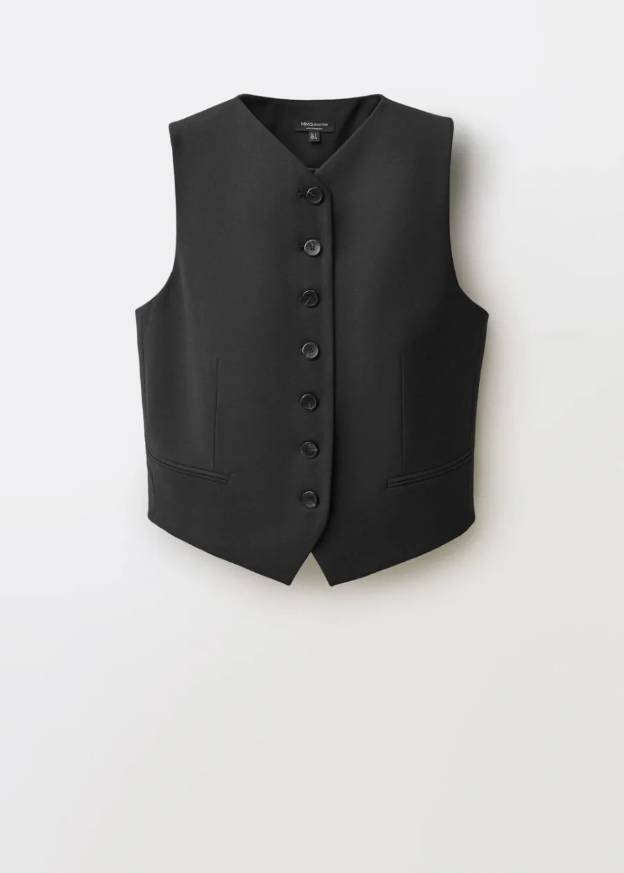 Tkanina mieszanka wełny. Model prosty. Dekolt V. Bez rękawów. Dwie wpuszczene kieszenie z przodu. Zapięcie z przodu na guziki. Wewnętrzna podszewka. Total look. Kolekcja Selection.