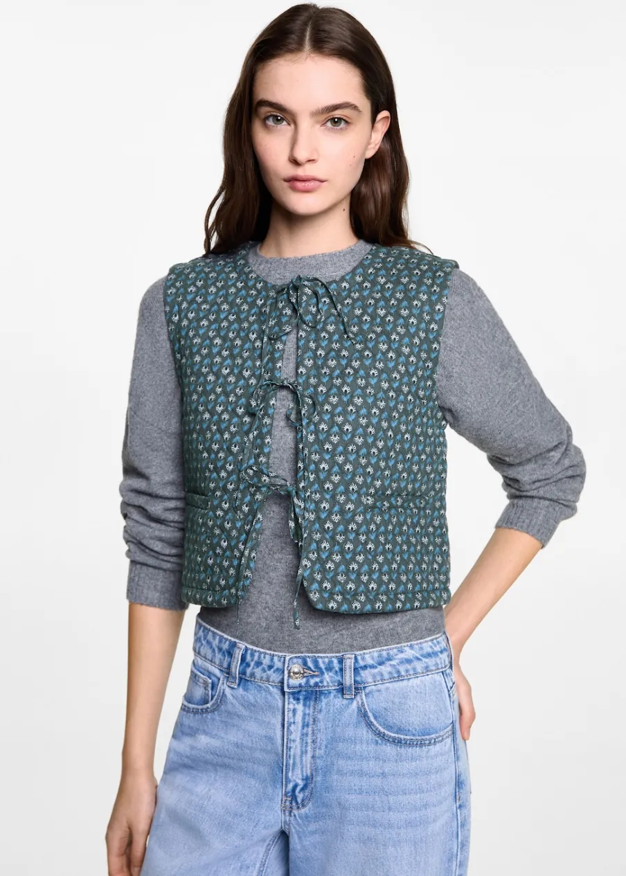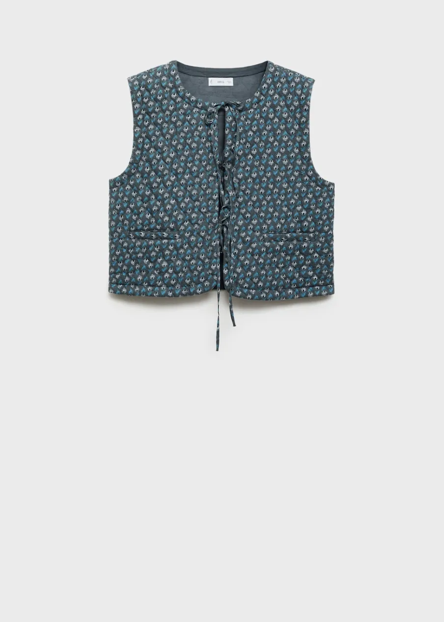 Model prosty. Model pikowany. Nadruk. Krótki krój. Okrągły dekolt. Regulowane wiązanie. Modelka ma 172 cm wzrostu i nosi rozmiar M.