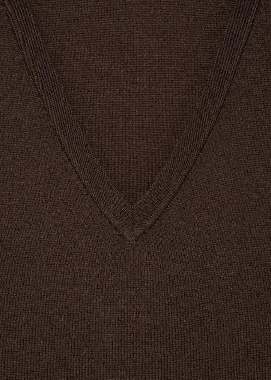 OpisTkanina z cienkiej dzianiny. Dekolt V. Bez rękawów. Prosty dół. Model ma 185 cm wzrostu i nosi rozmiar M.