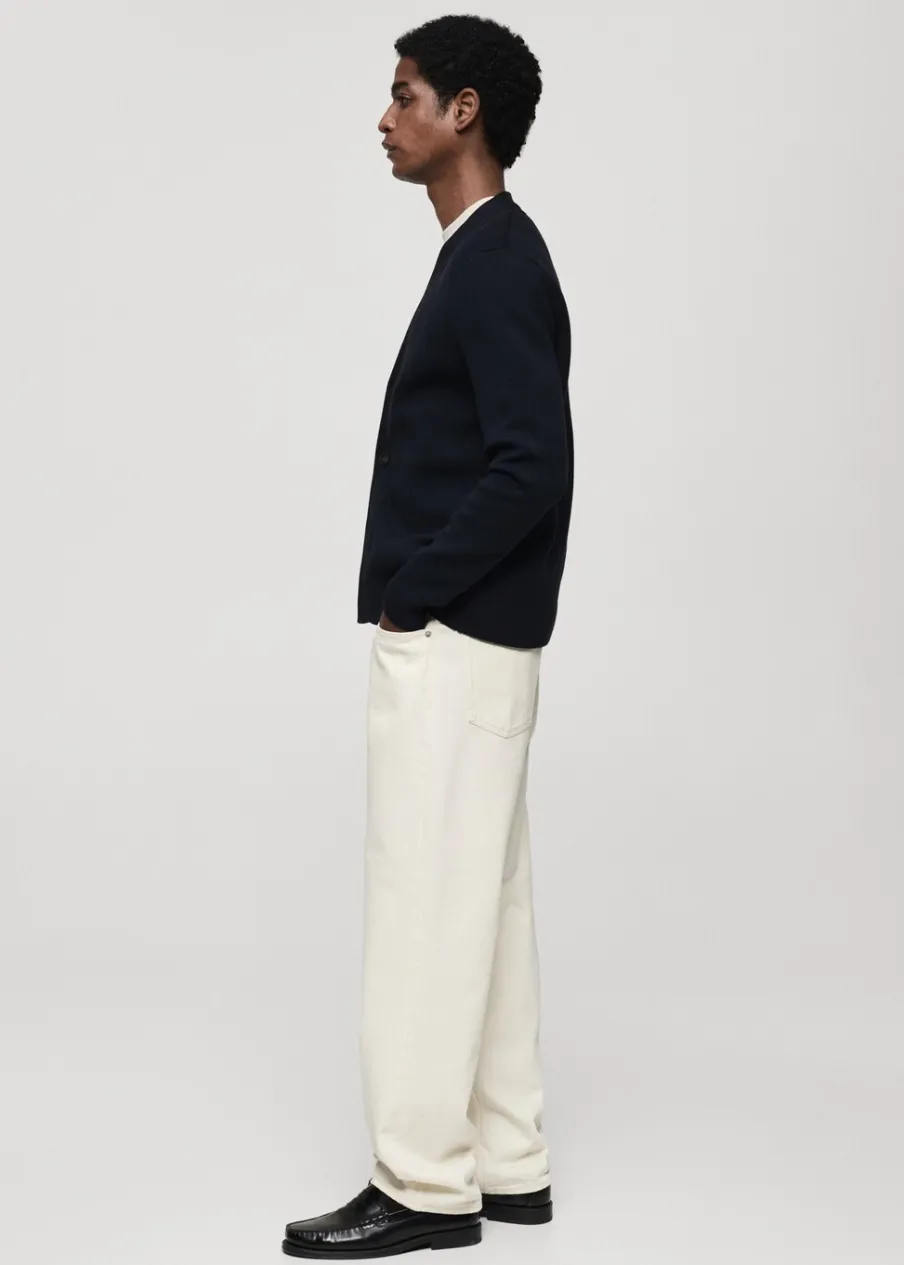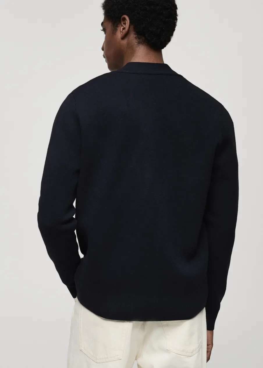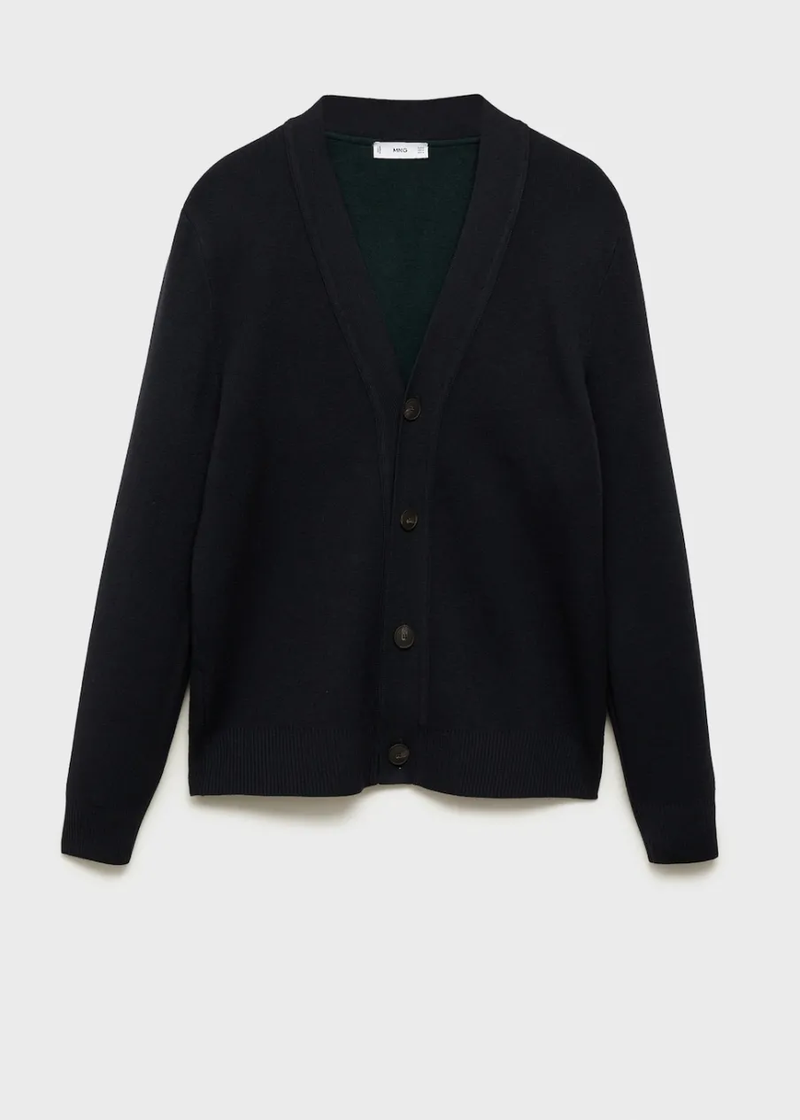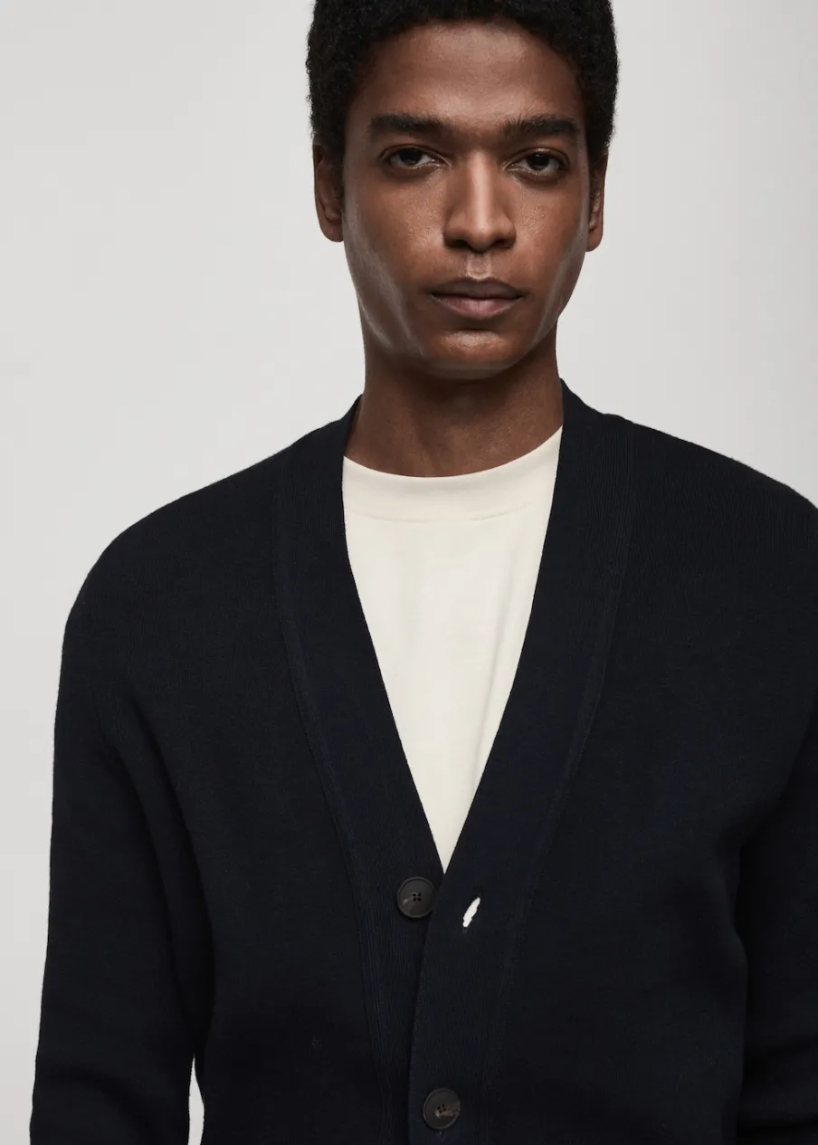 Finom kötésű anyag, gomb rögzítés, bordázott szegély, a modell testmagassága 185 cm és M-es méretet visel.