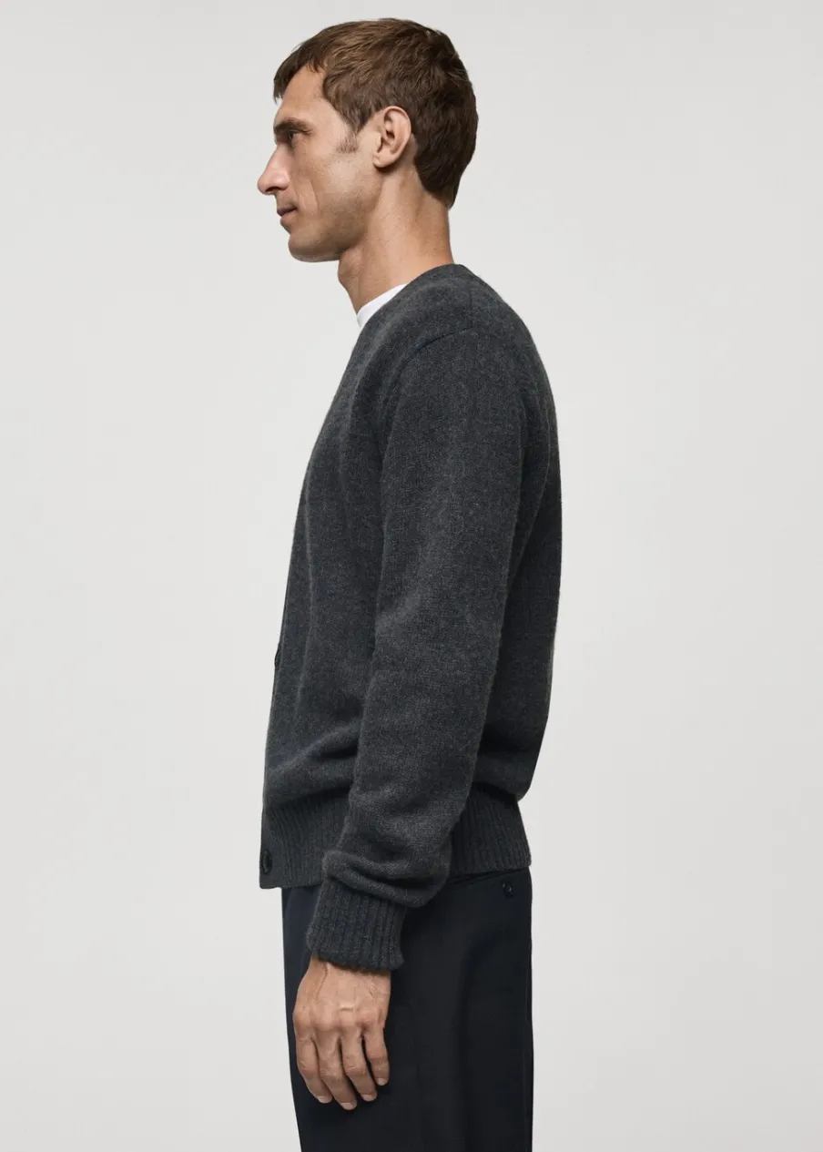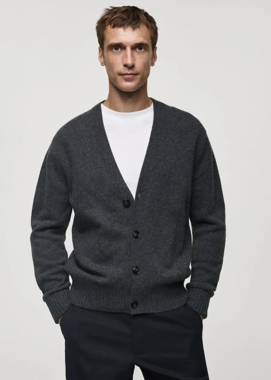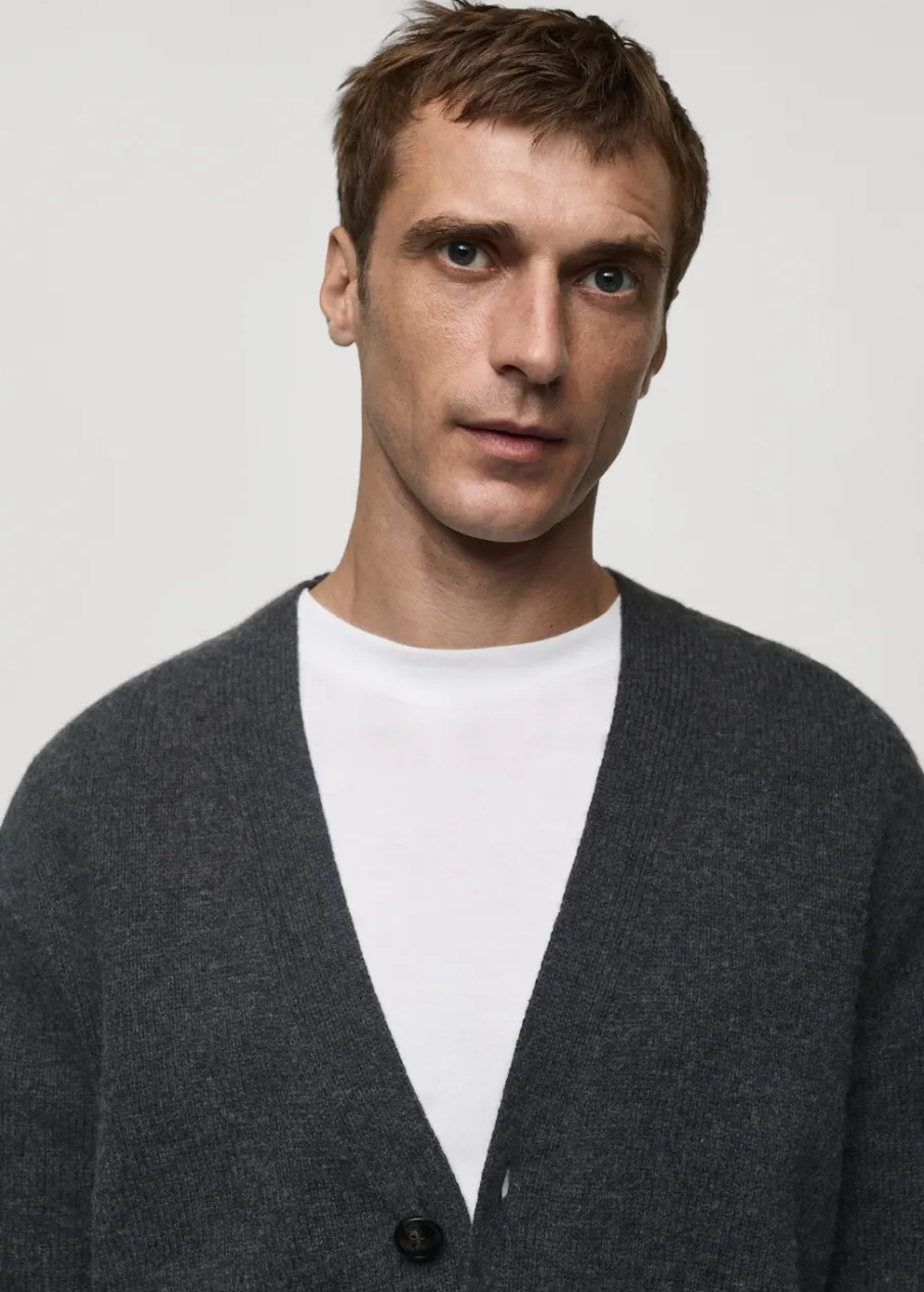 Wełniana tkanina. Dzianina średniej grubości. Materiały z recyklingu. Długi rękaw. Dekolt V. Zapięcie na guziki. Mankiety i dół wykończone ściągaczem. Model ma 185 cm wzrostu i nosi rozmiar M. Kampania z Antoinem Griezmannem.