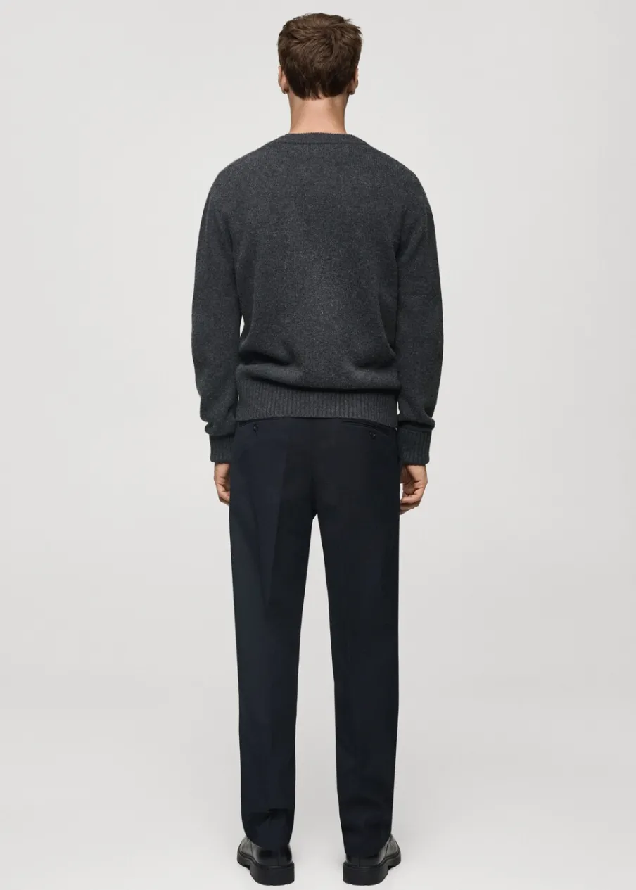 OpisWełniana tkanina. Dzianina średniej grubości. Materiały z recyklingu. Długi rękaw. Dekolt V. Zapięcie na guzi…