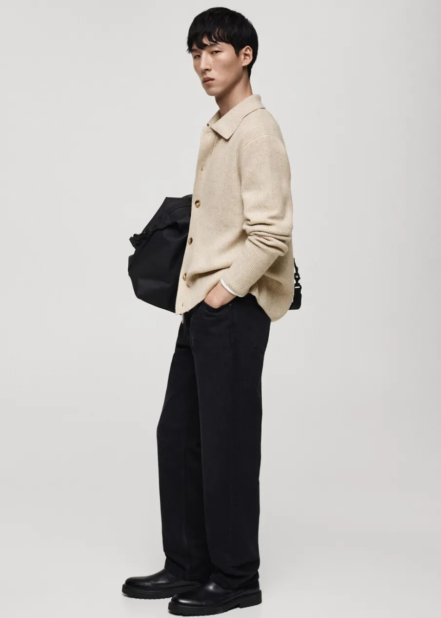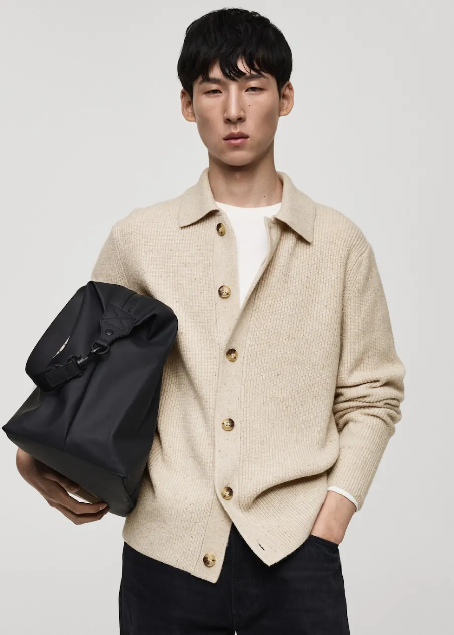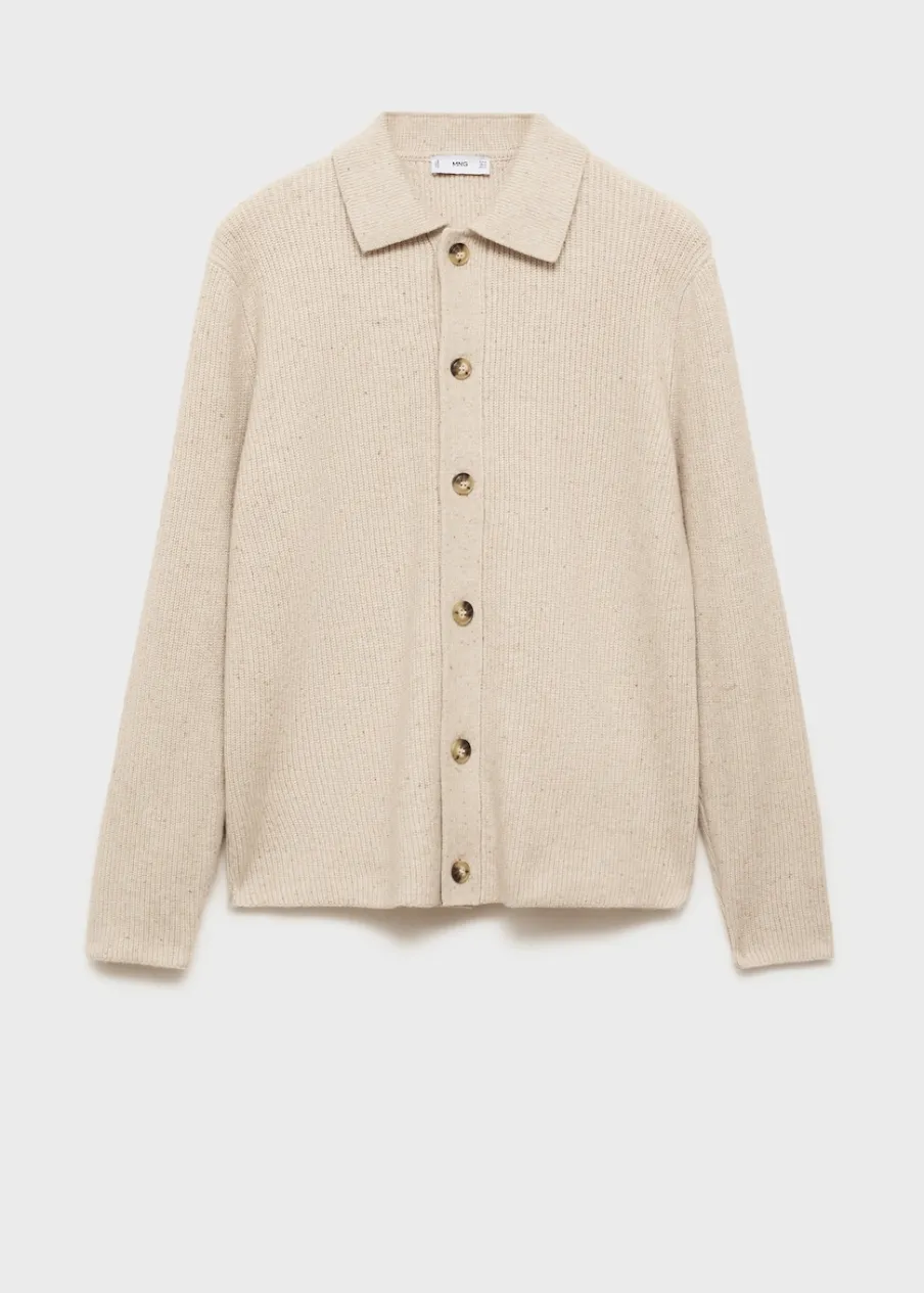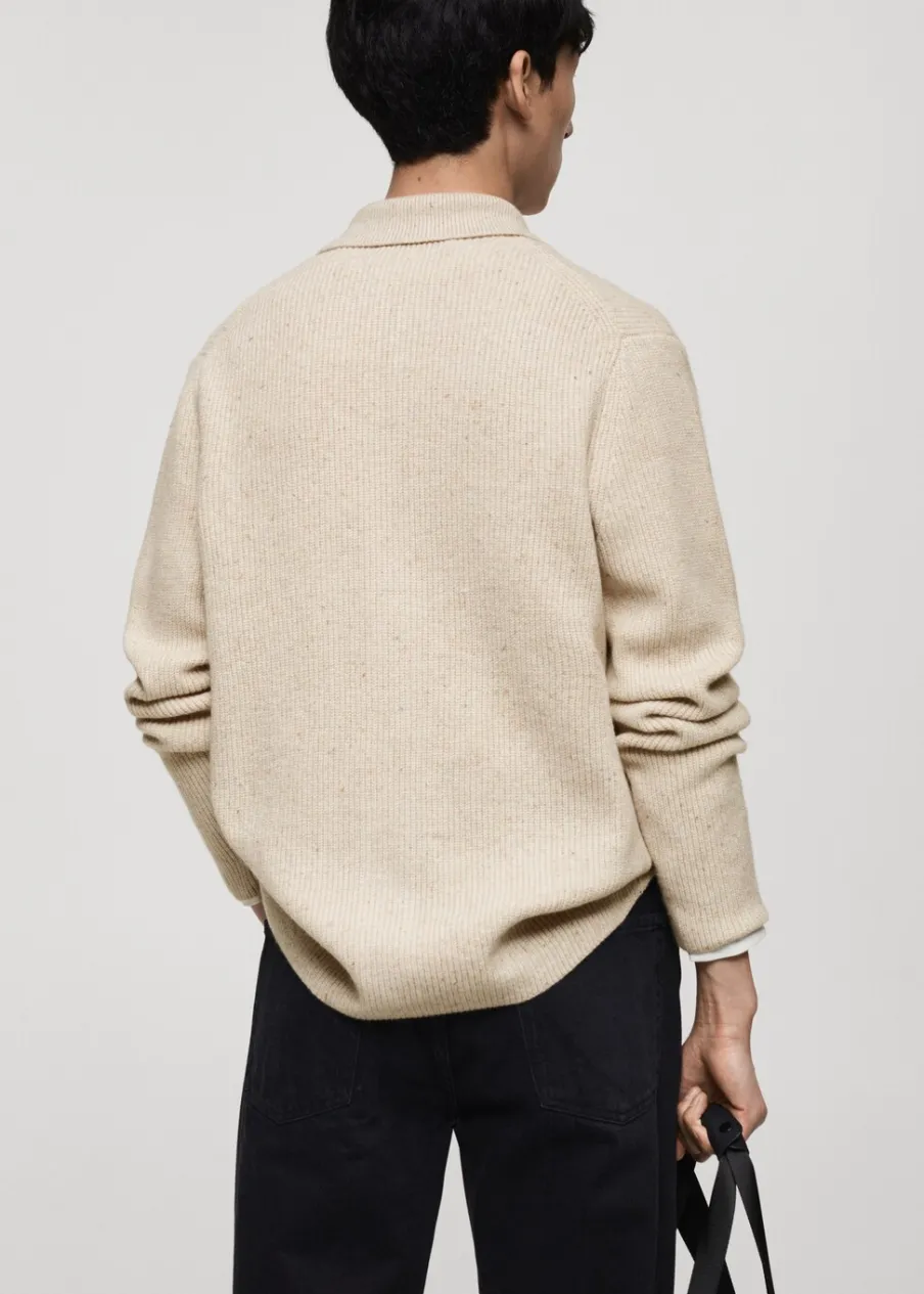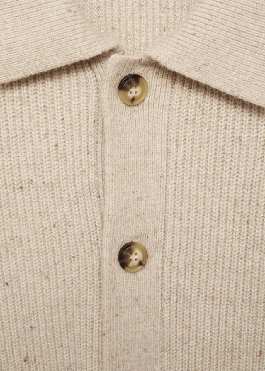 Dzianina średniej grubości. Prążkowana tekstura. Zapięcie na guziki. Kołnierzyk polo. Model ma 185 cm wzrostu i nosi rozmiar M.