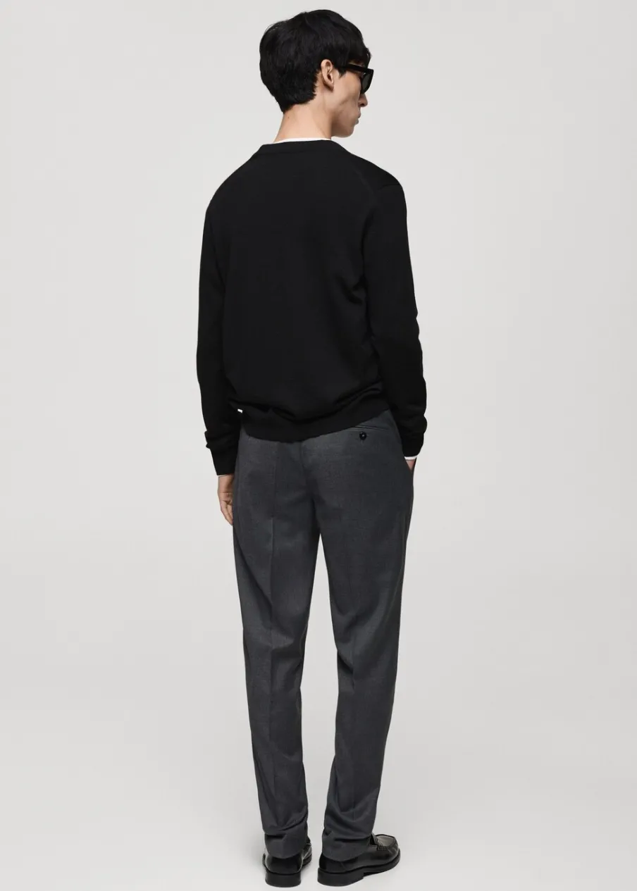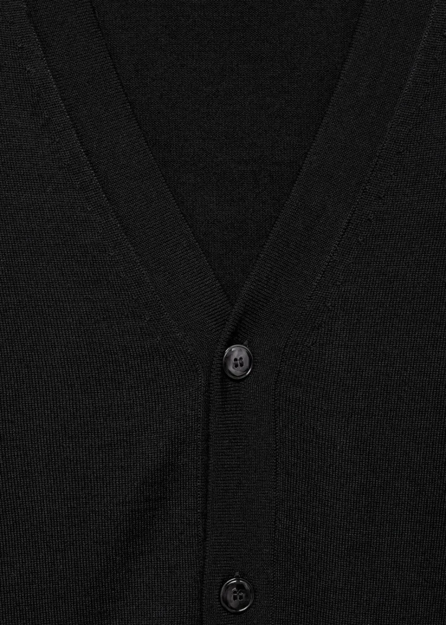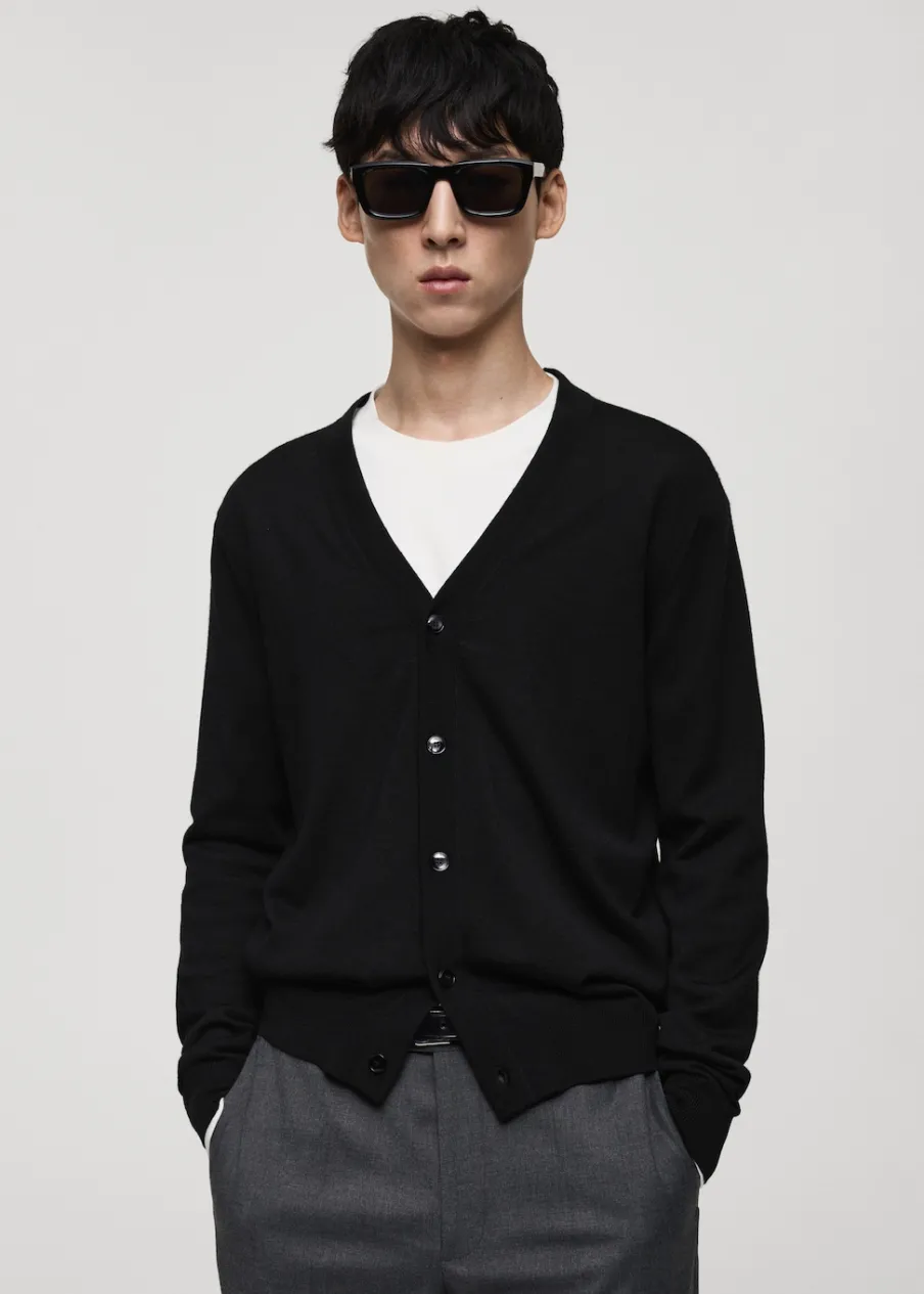 Krój regular. Tkanina z 100% wełny. Tkanina z cienkiej dzianiny. Dekolt V. Zapięcie na guziki. Ściągaczowe wykończenia. Model ma 185 cm wzrostu i nosi rozmiar M.
