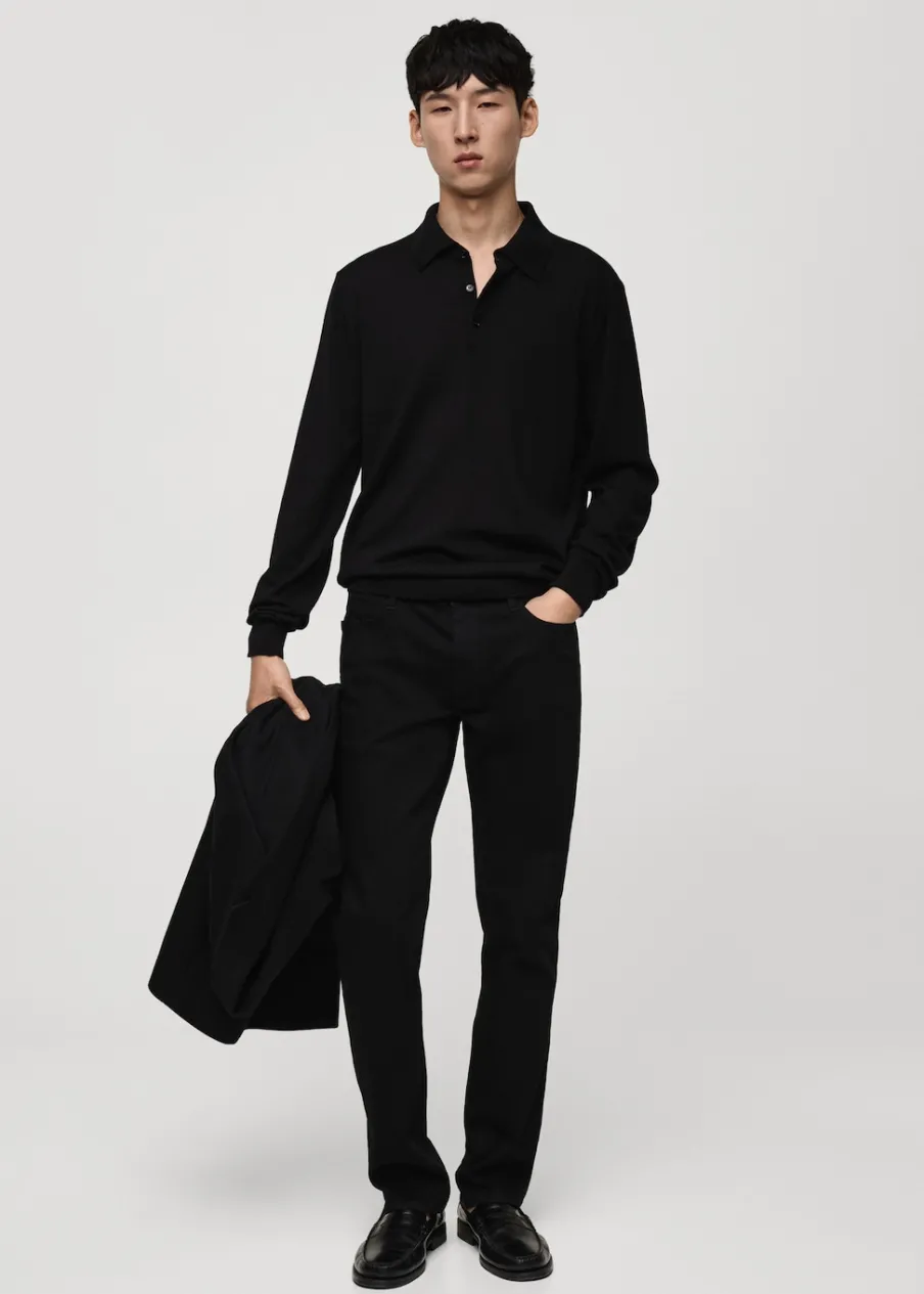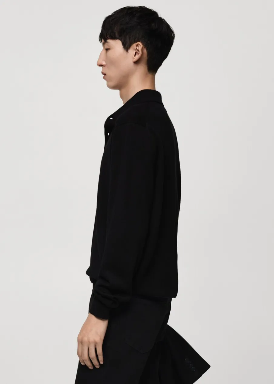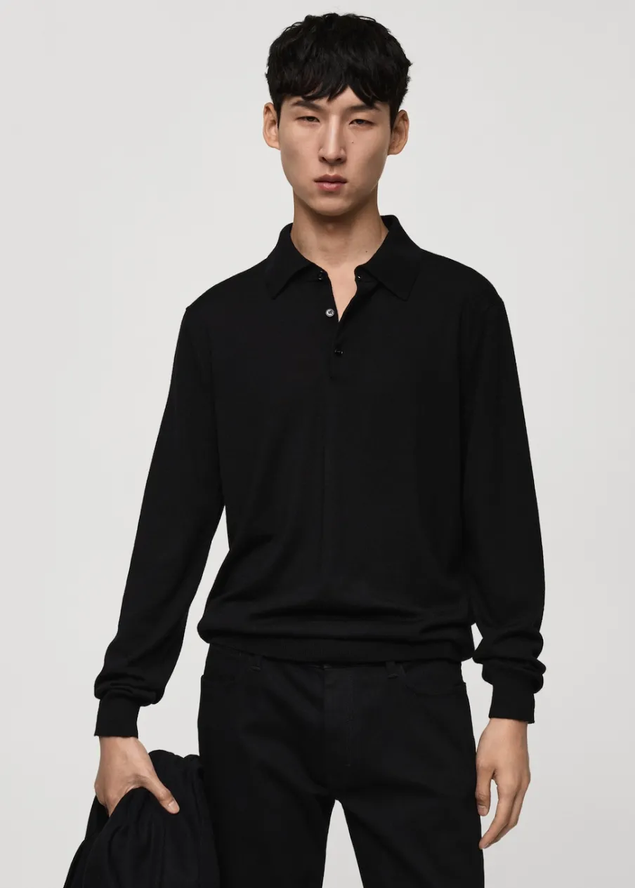 ESSENTIALS: Made to last. Kolory camel i mchowa zieleń dostępne tylko online. Krój regular. 100% wełna merynosowa. Kołnierzyk polo z zapięciem na guziki. Długi rękaw z elastycznymi mankietami. Prosty dół. Kontrastowe prążkowane wykończenie na dekolcie, rękawach i u dołu. Model ma 190 cm wzrostu i nosi rozmiar M. Dzianina o średniej grubości.