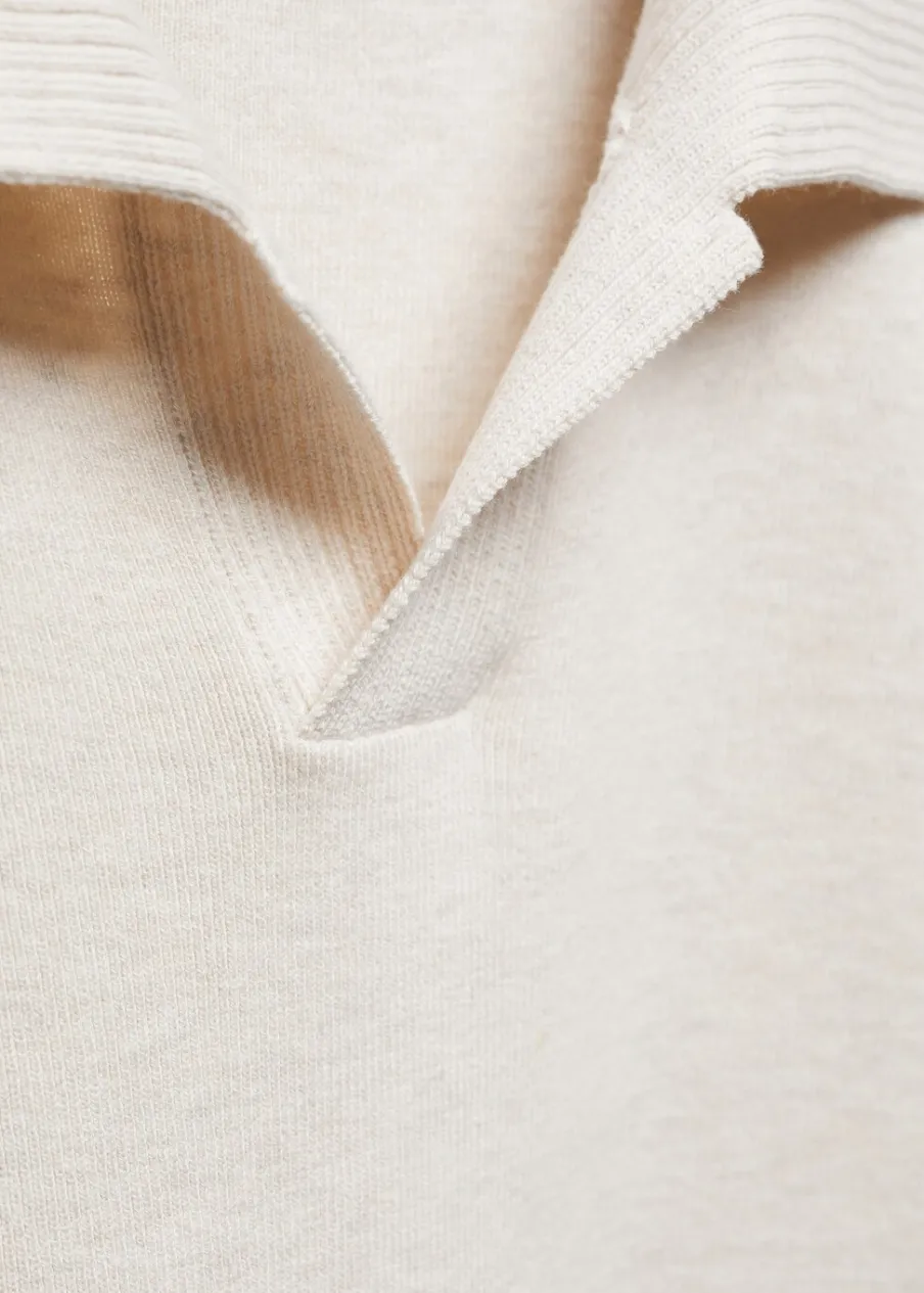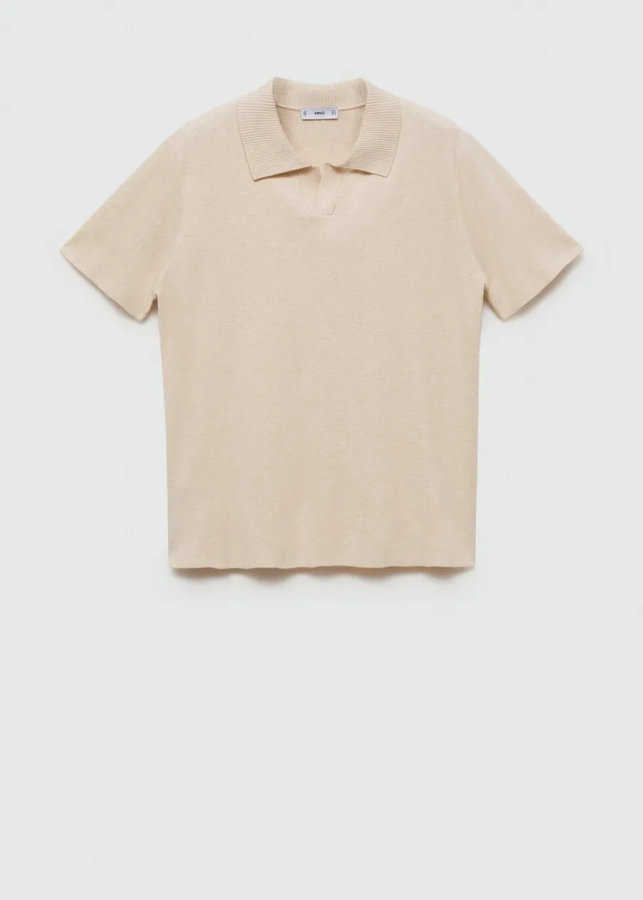 Kolor brązowy dostępny tylko online. Tkanina mieszanka bawełny. Tkanina z cienkiej dzianiny. Kołnierzyk polo z dekoltem w serek bez zapięcia. Ściągaczowy kołnierz. Krótki rękaw. Prosty dół. Model ma 185 cm wzrostu i nosi rozmiar M.