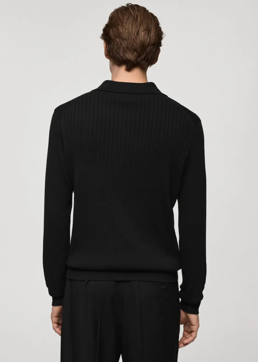 OpisCienka dzianina bawełniana. Krój regular. Prążkowana tekstura. Kołnierzyk polo bez guzików. Długi rękaw. Pro…