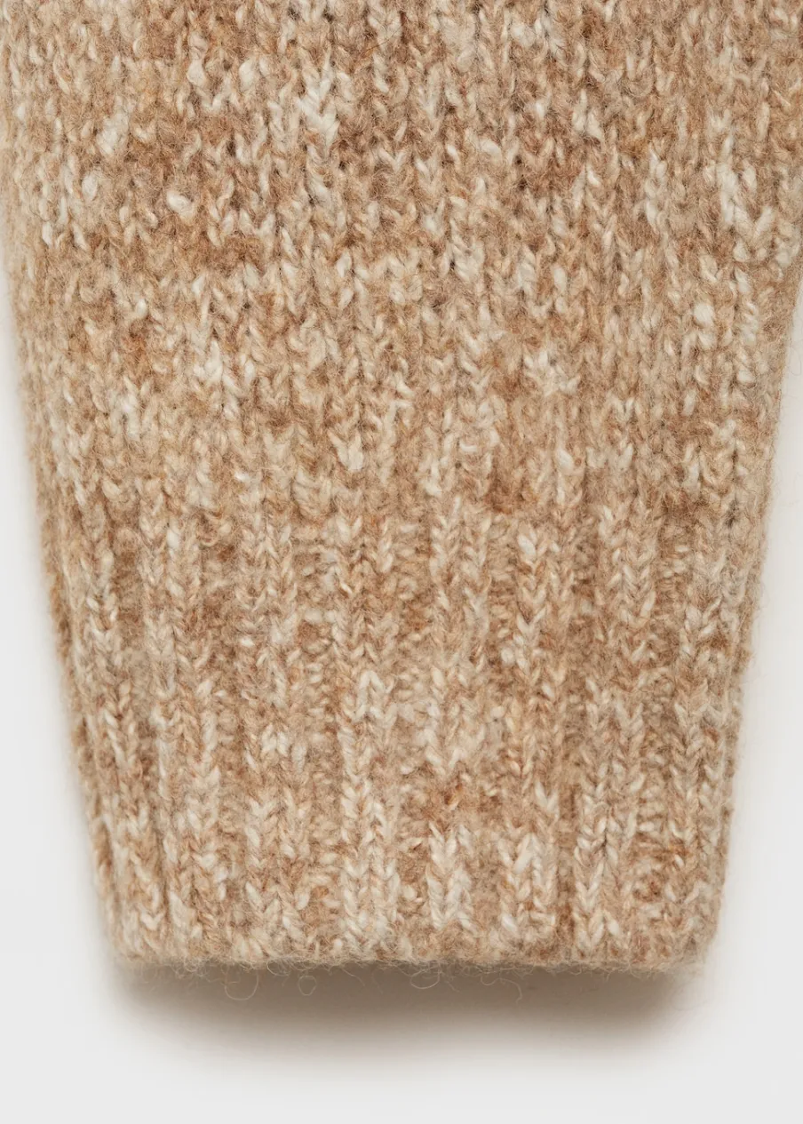 Tkanina z wełną. Deseń melanżowy. Kołnierzyk polo z zapięciem na guziki. Model prosty. Klasyczny kołnierzyk. Mankiety i dół wykończone ściągaczem.
