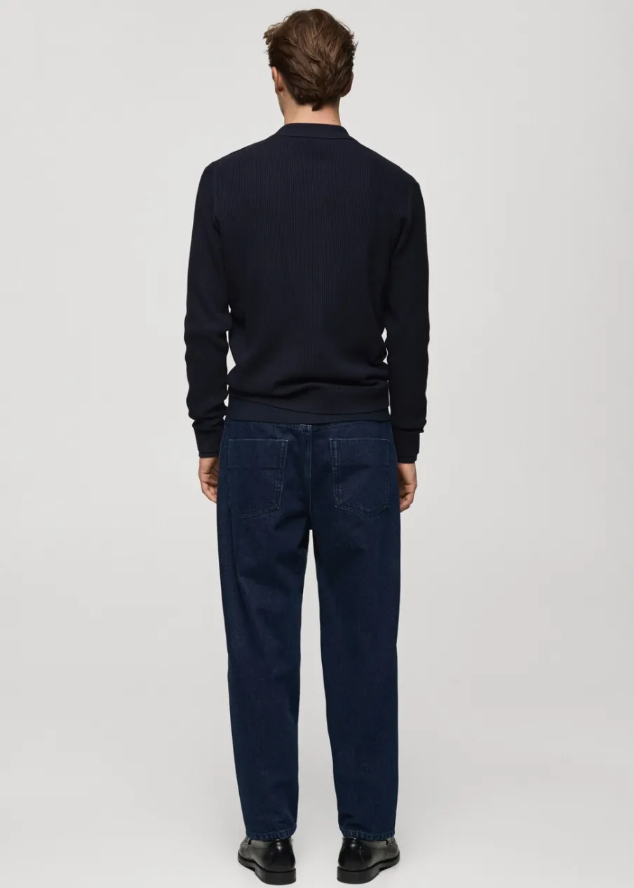 OpisKrój regular. Tkanina mieszanka bawełny. Prążkowana tekstura. Kołnierzyk polo z zapięciem na guziki. Model ma …