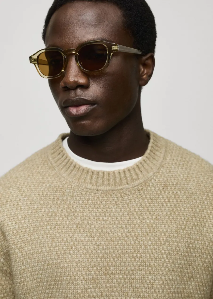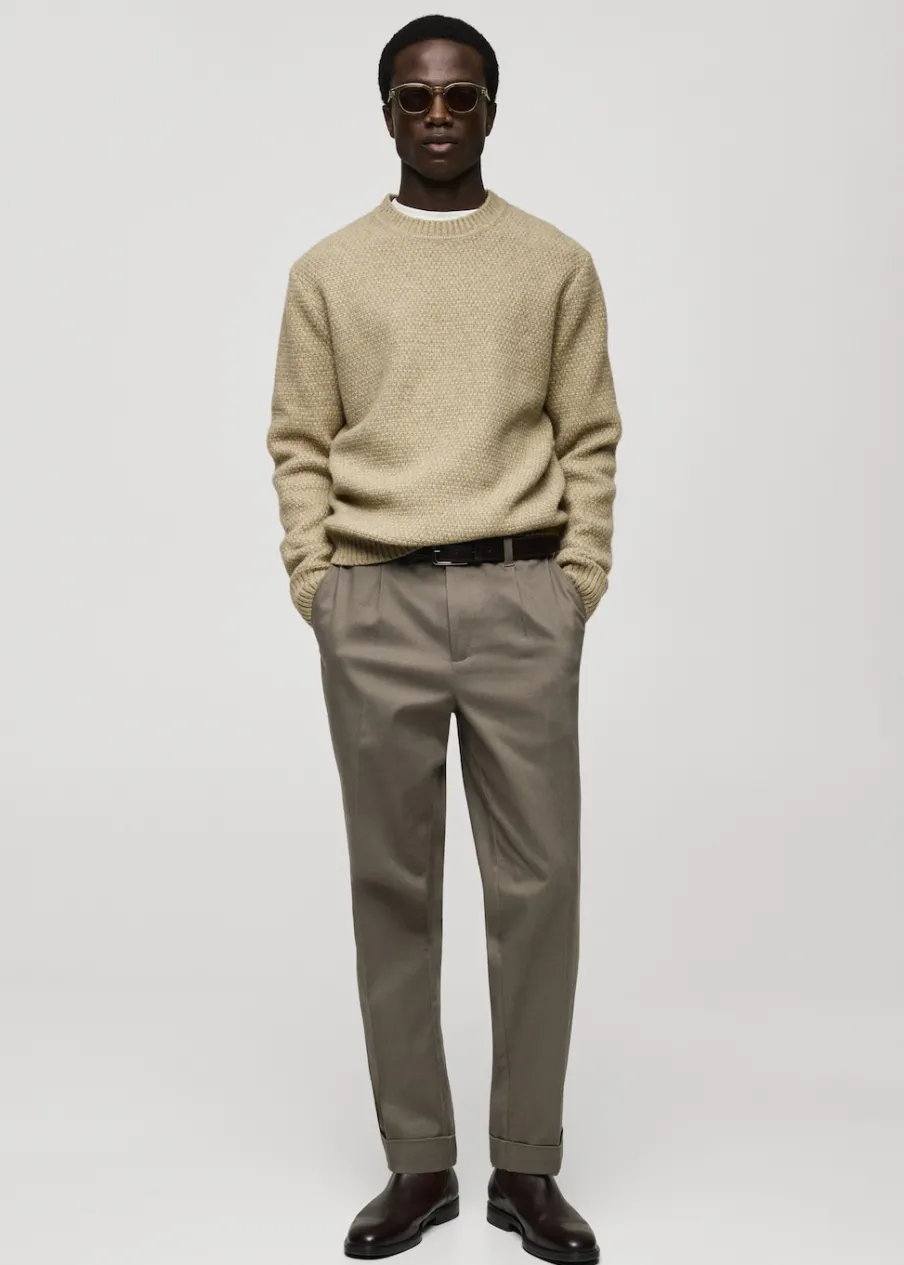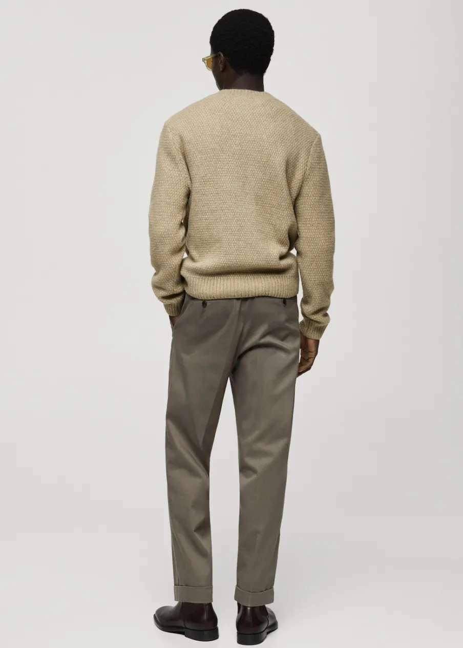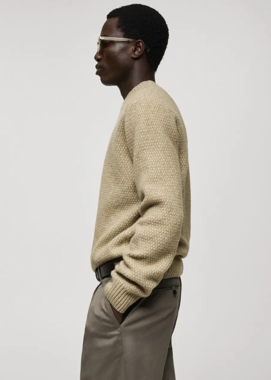 Krój regular. Dzianina o średniej grubości. Strukturalna tkanina. Okrągły dekolt. Ściągaczowe wykończenia. Model ma 185 cm wzrostu i nosi rozmiar M.