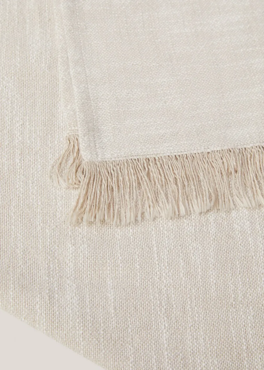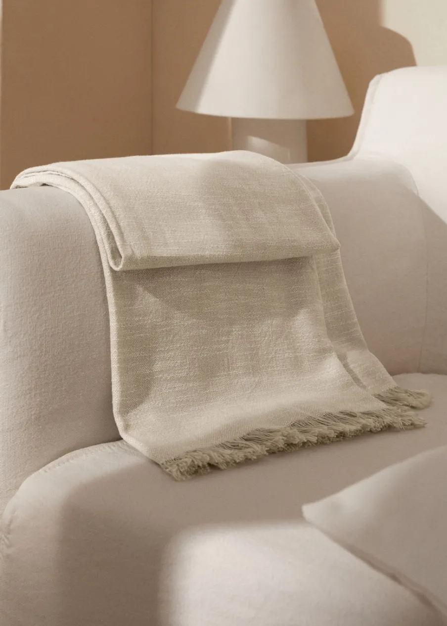 Rozmiar: 130x180cm. Wykończenia z frędzlami. Średnio ciepła tkanina. Idealna na przejściowe pory roku. Tkanina z 100% bawełny.