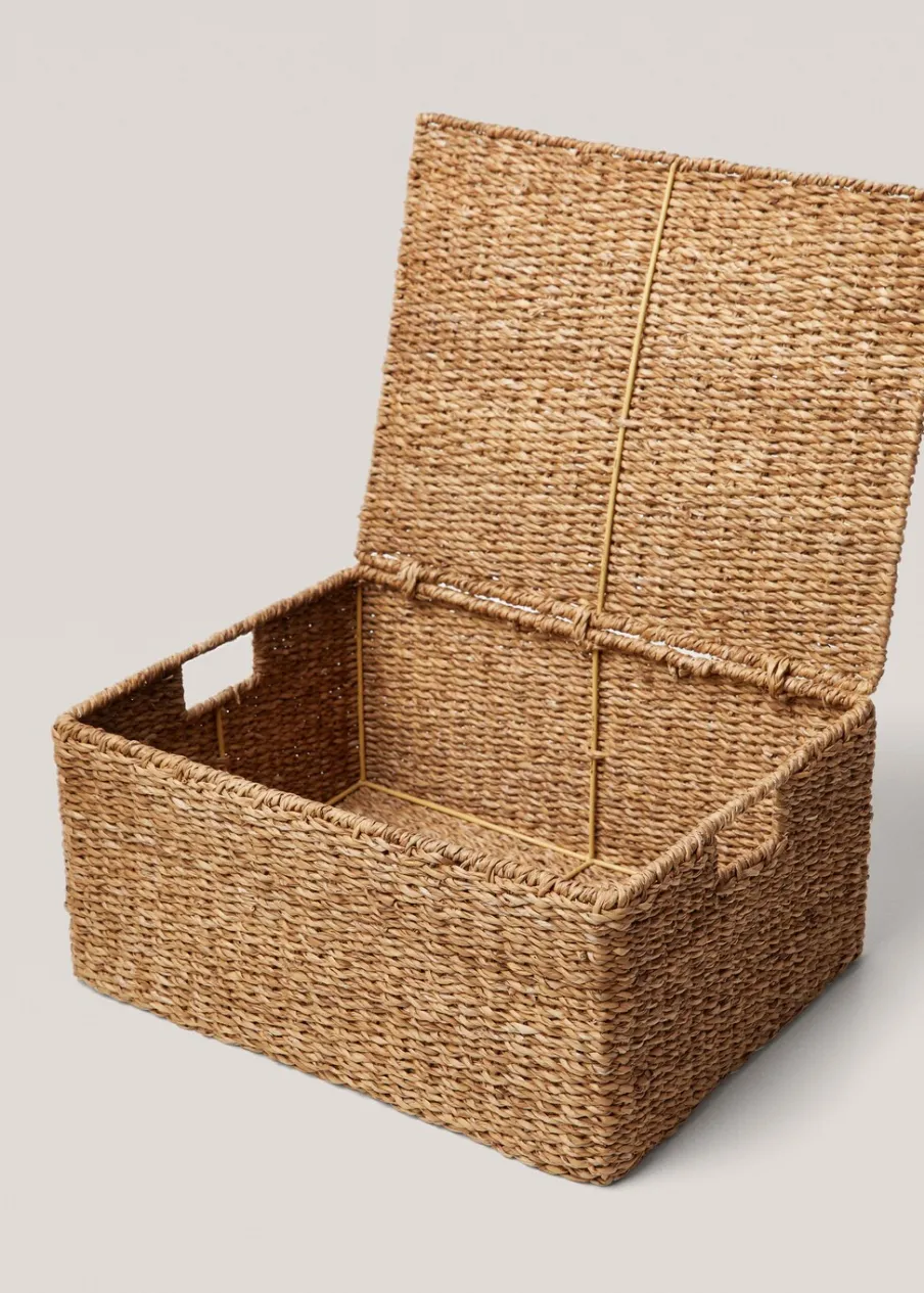 Wymiary: 45 x 35 x 21 cm. Model pleciony. Naturalne włókna. Żelazny stelaż. Dwa uchwyty. Ten model koszyka jest dostępny w 2 rozmiarach (M, L).