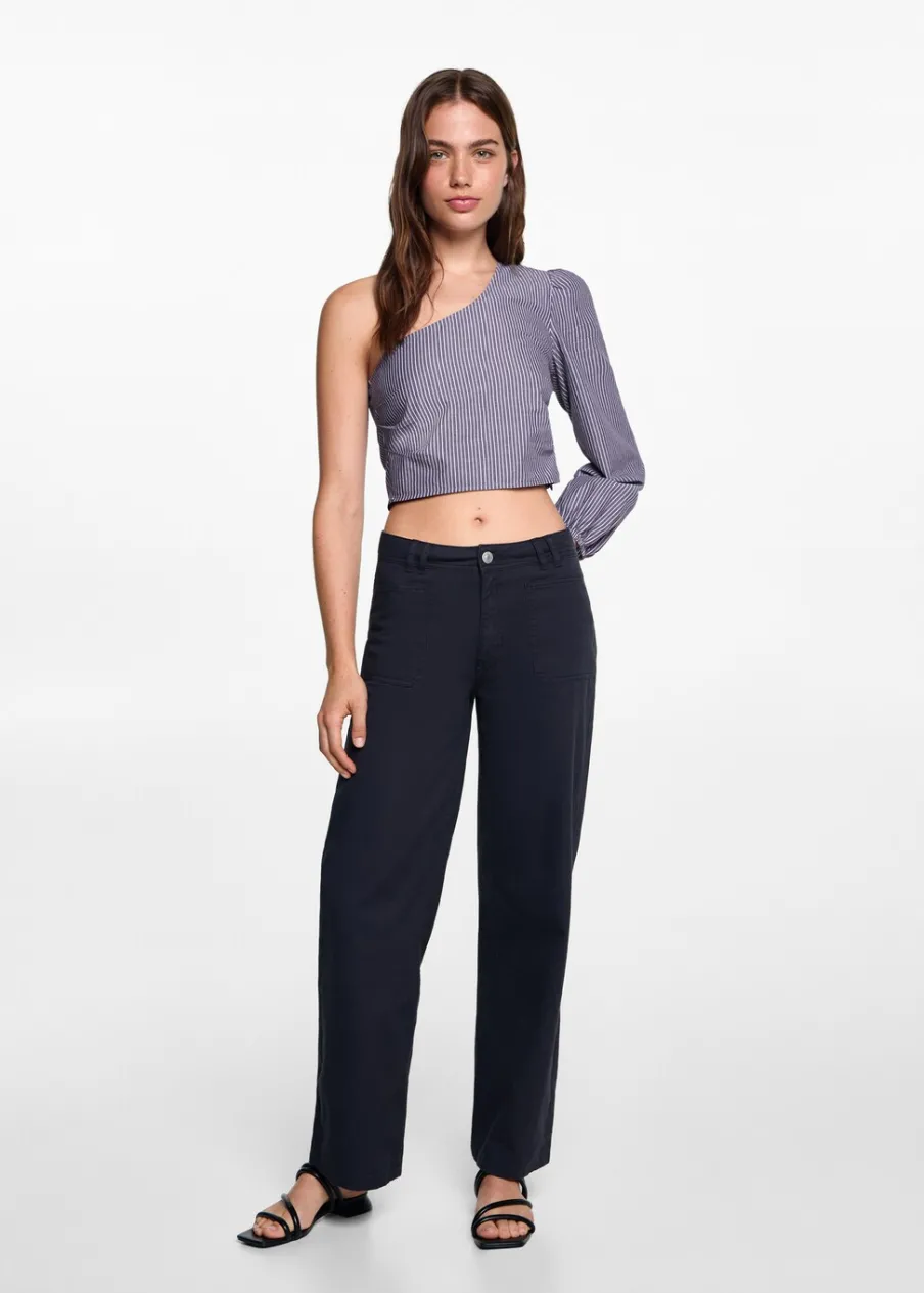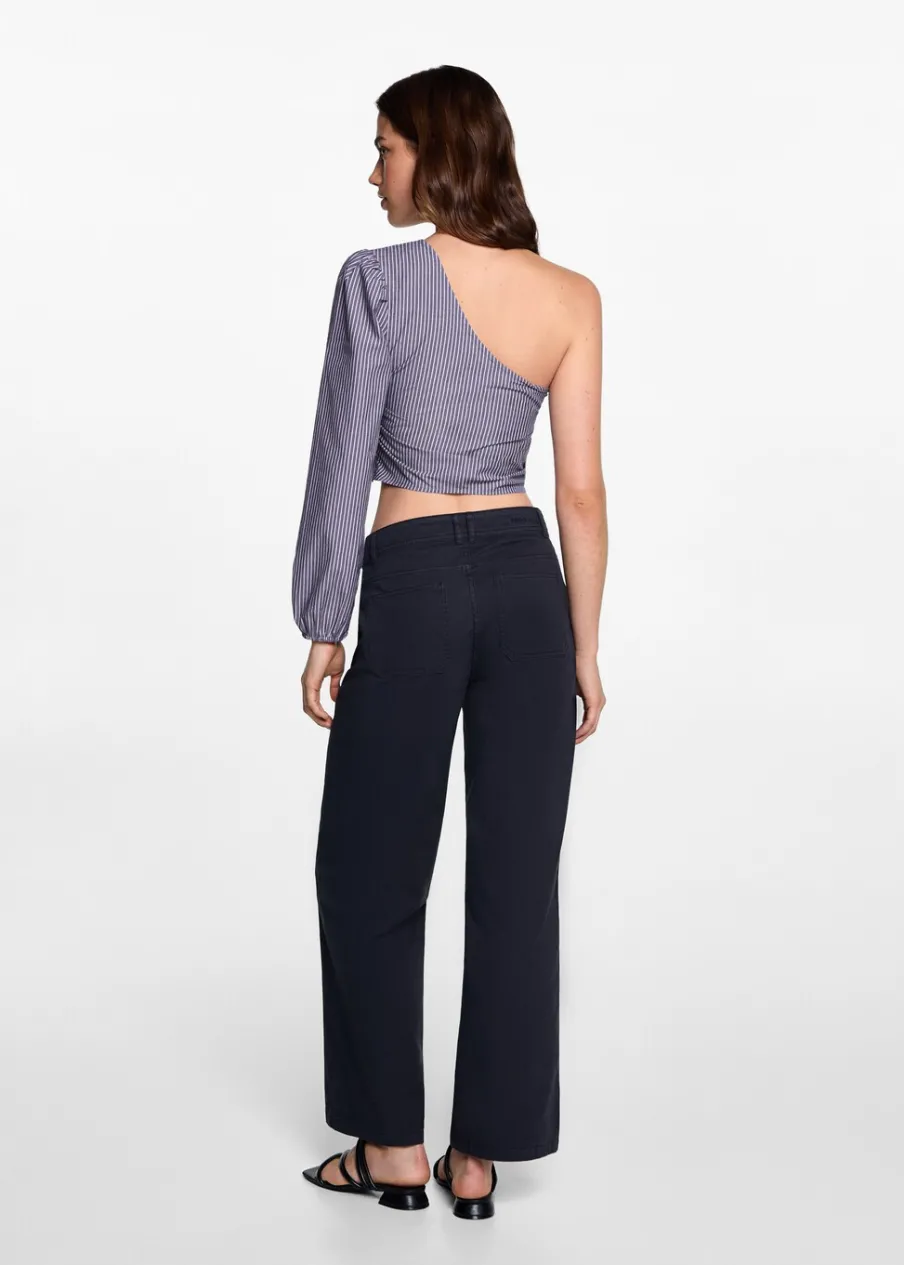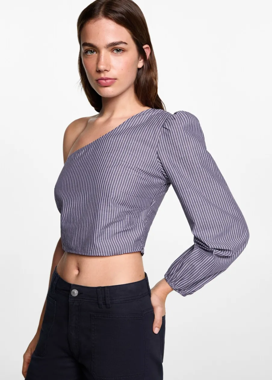 100% bomull. Model prosty. Krótki krój. Wzór w pasy. Detal z zakładkami. Asymetryczny krój. Deseń crop. Bufiasty rękaw. Długi rękaw. Modelka ma 172 cm wzrostu i nosi rozmiar M. Powrót do szkoły.