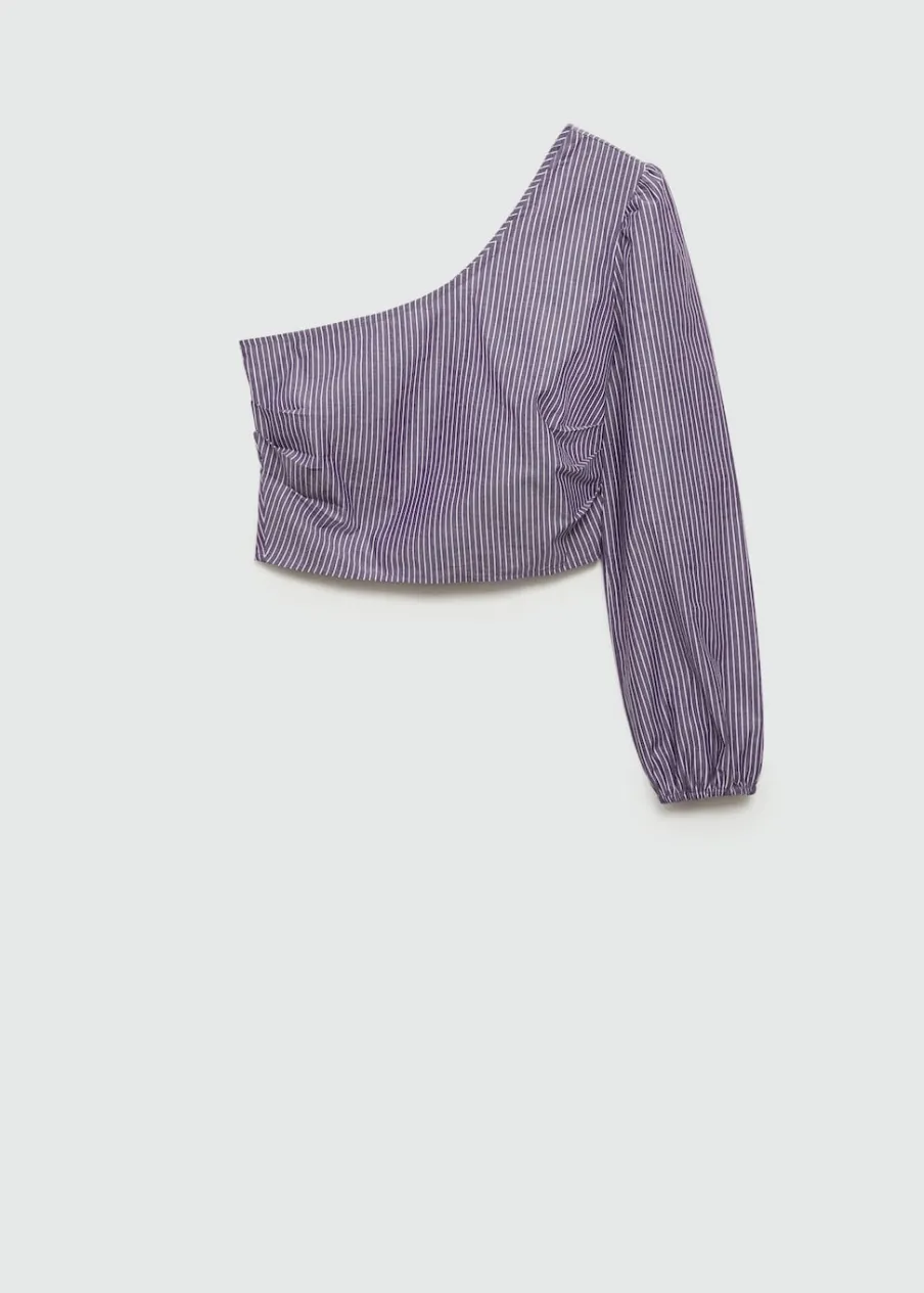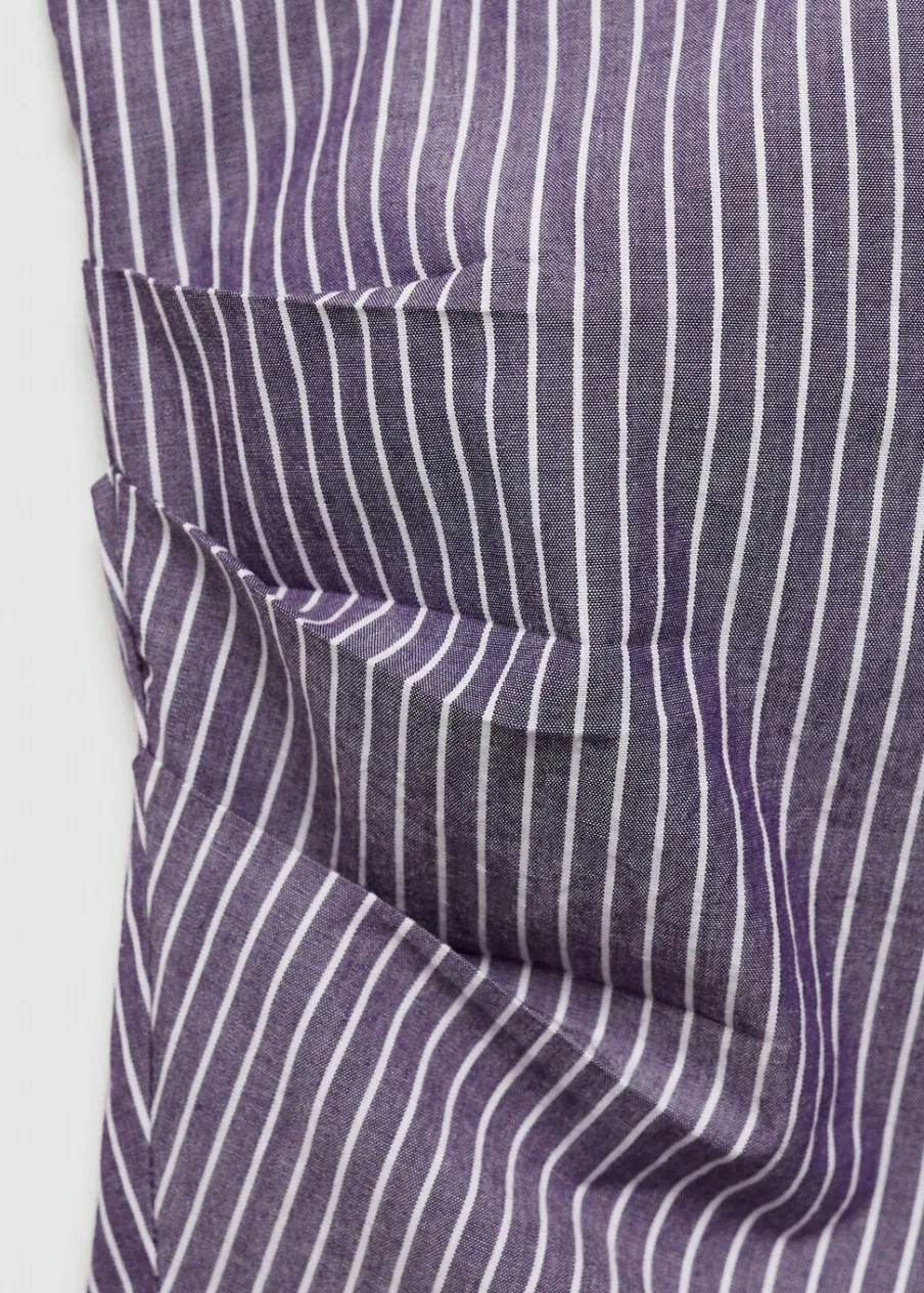 Opis100% bomull. Model prosty. Krótki krój. Wzór w pasy. Detal z zakładkami. Asymetryczny krój. Deseń crop. Buf…