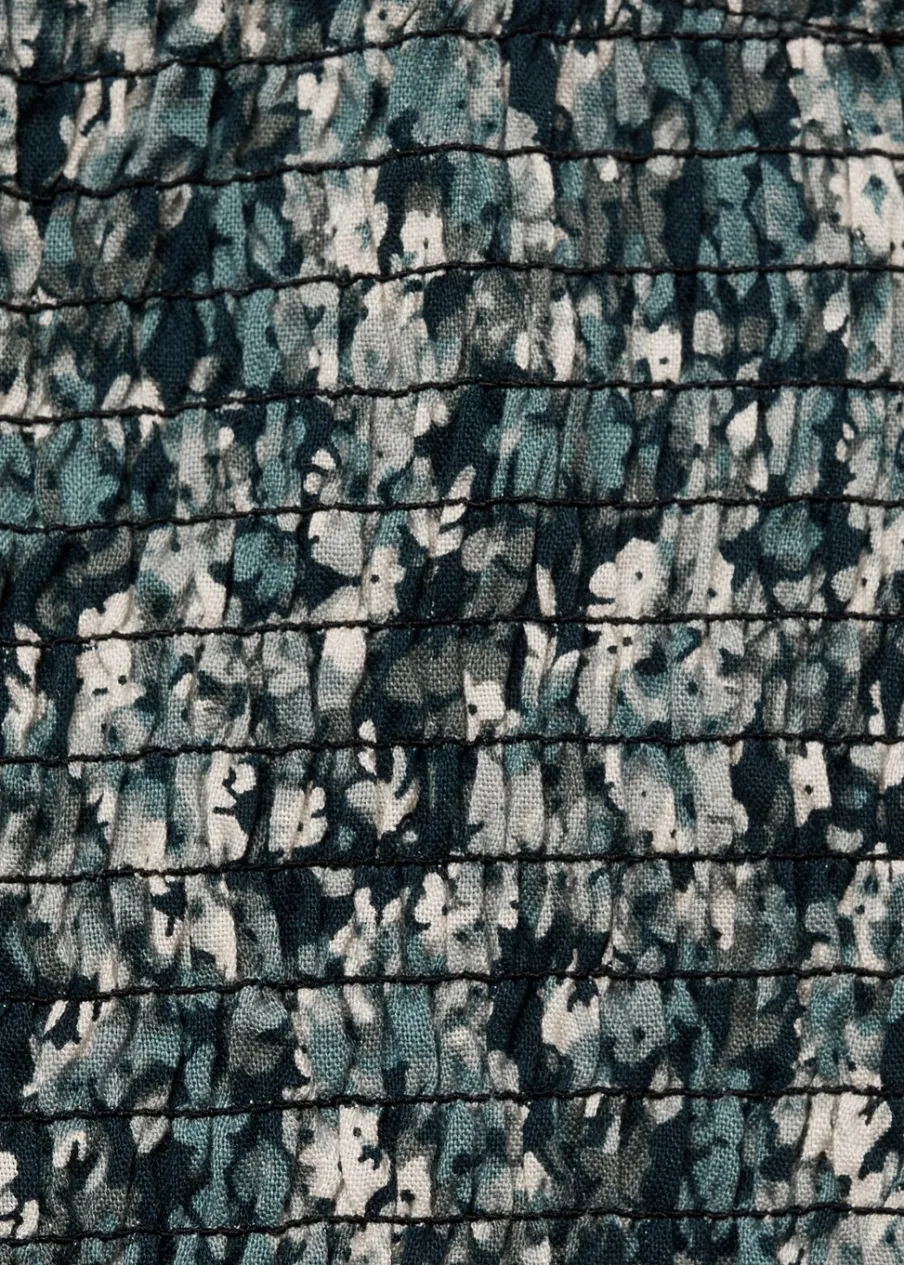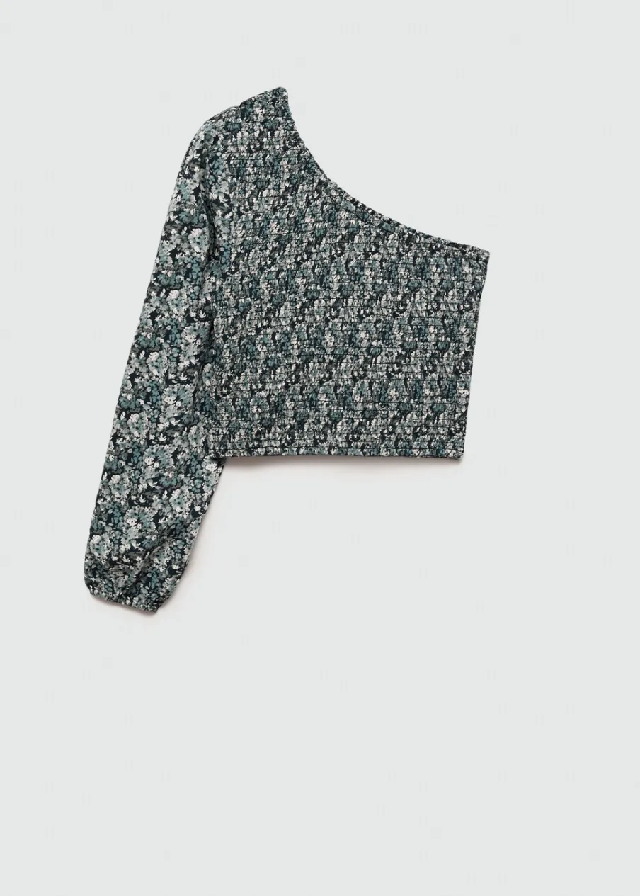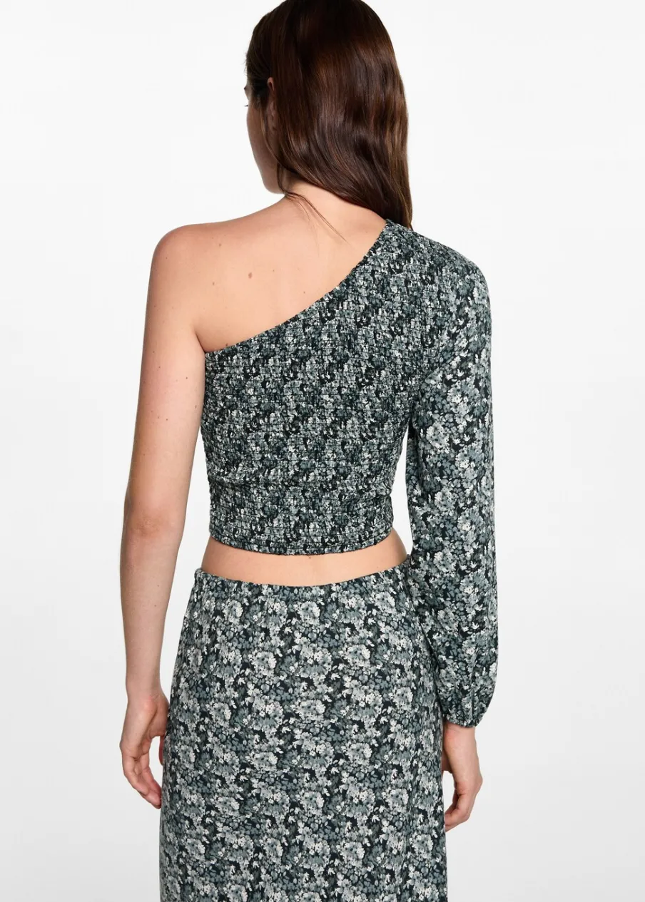 Asymetryczny krój. Kwiatowy wzór. Ozdobne marszczenie. Długi rękaw. Dostępny zestaw total look. Modelka ma 172 cm wzrostu i nosi rozmiar M. Nadruk. Tkanina z wiskozy.
