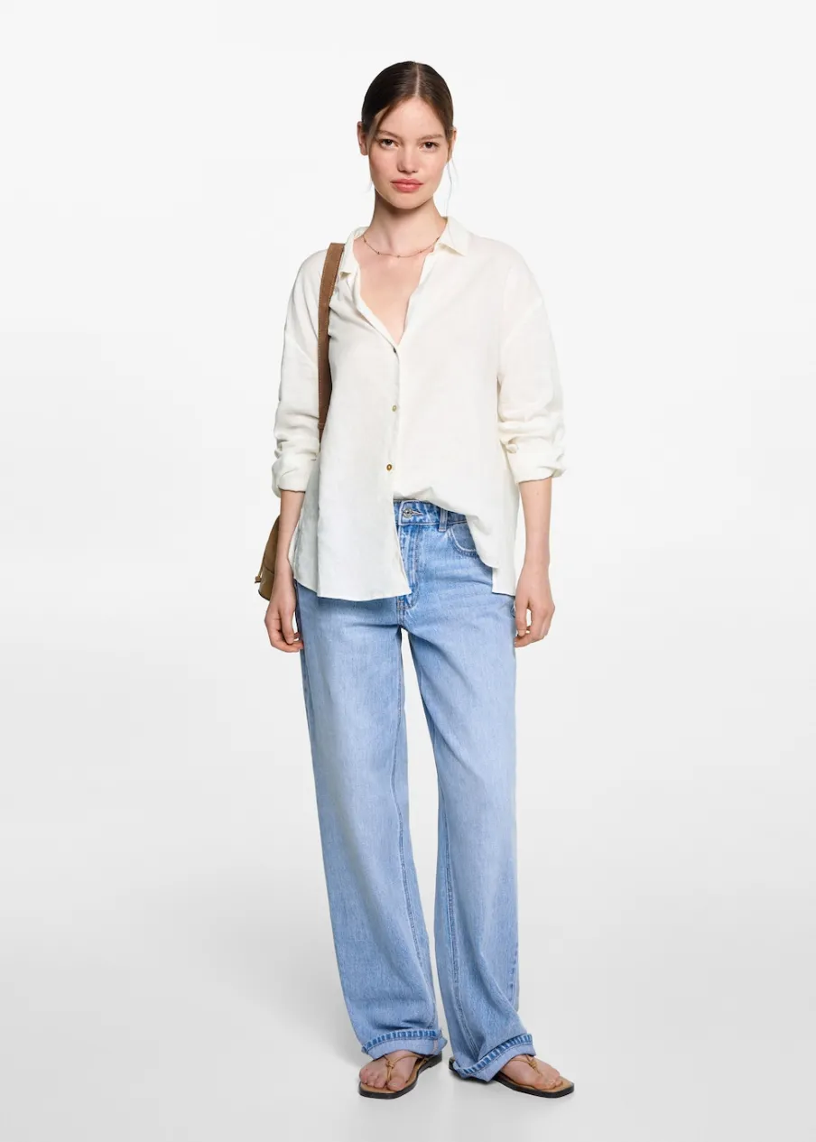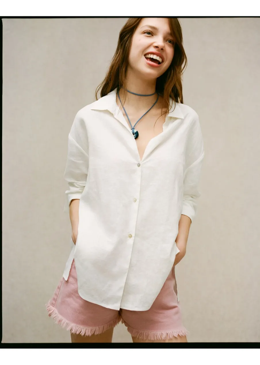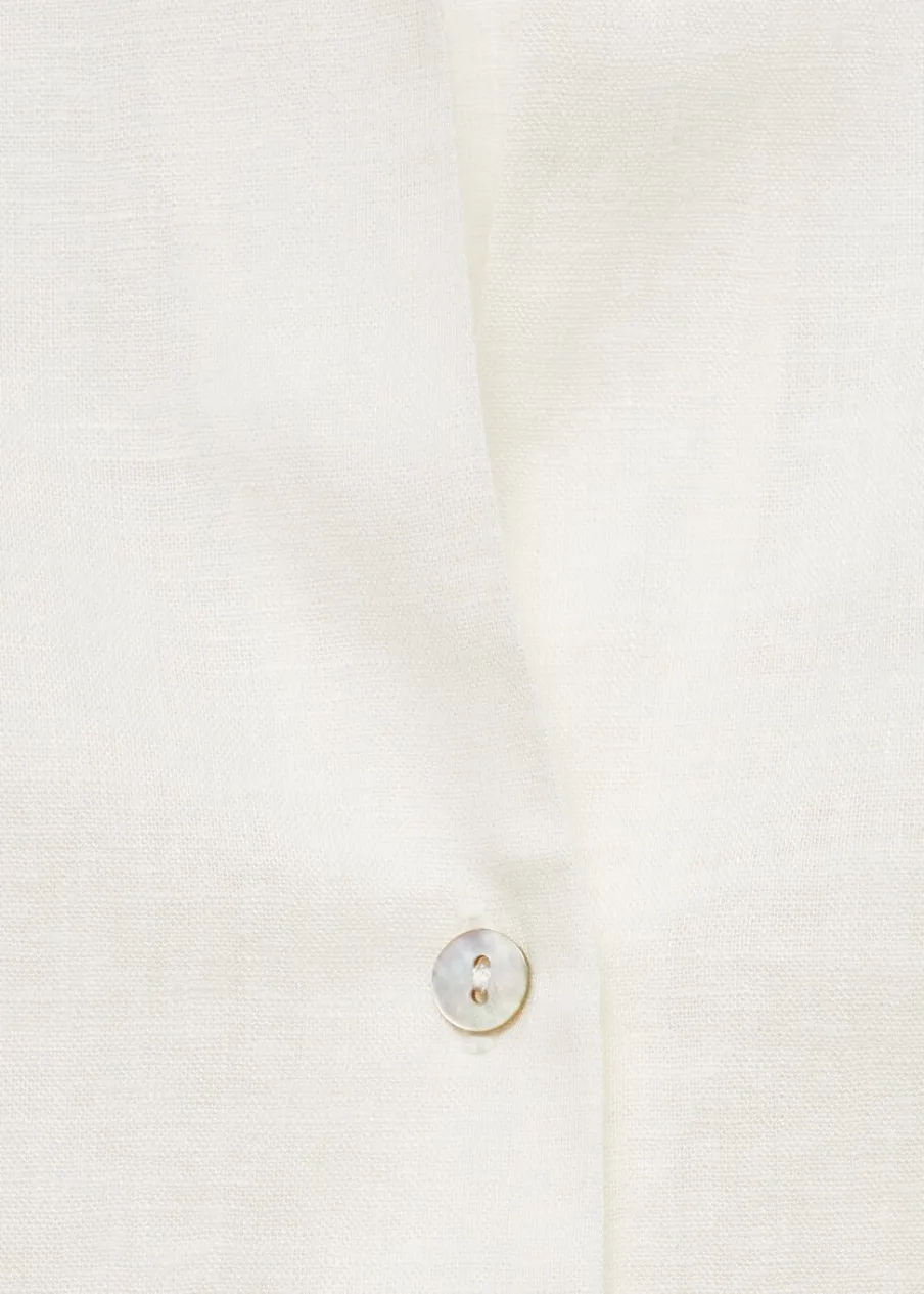 OpisTkanina lniana. Krój regular. Koszulowy kołnierz. Długi rękaw. Zapinane mankiety. Zapięcie na guziki.