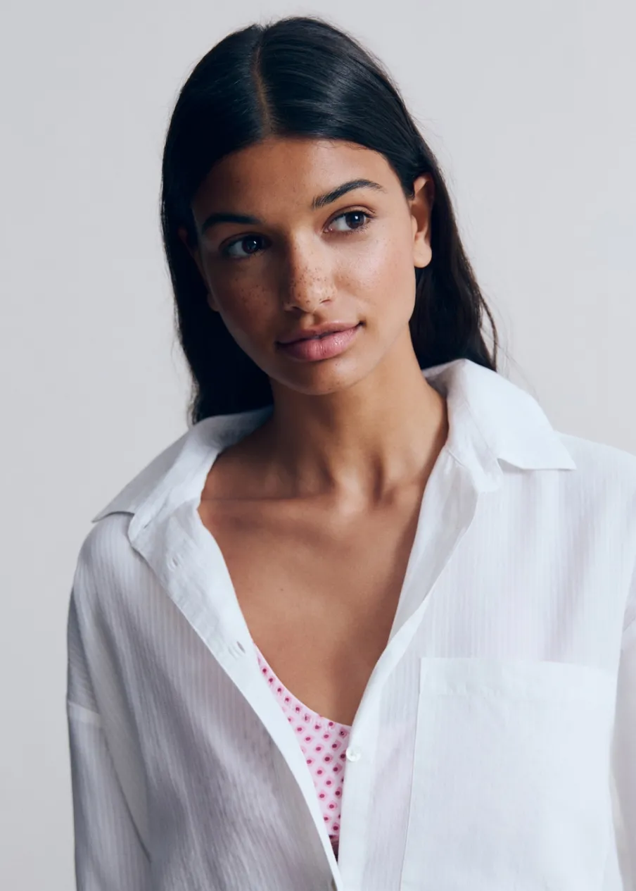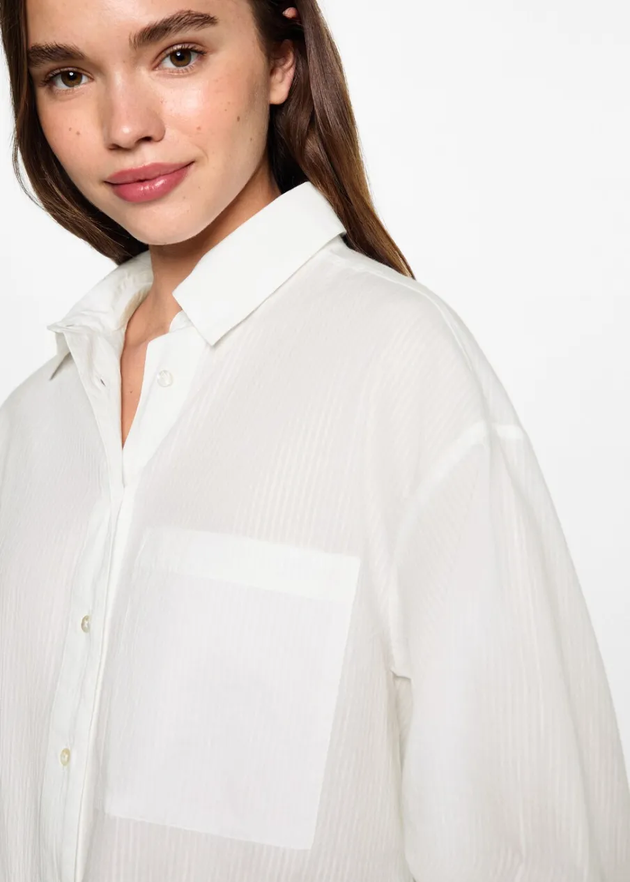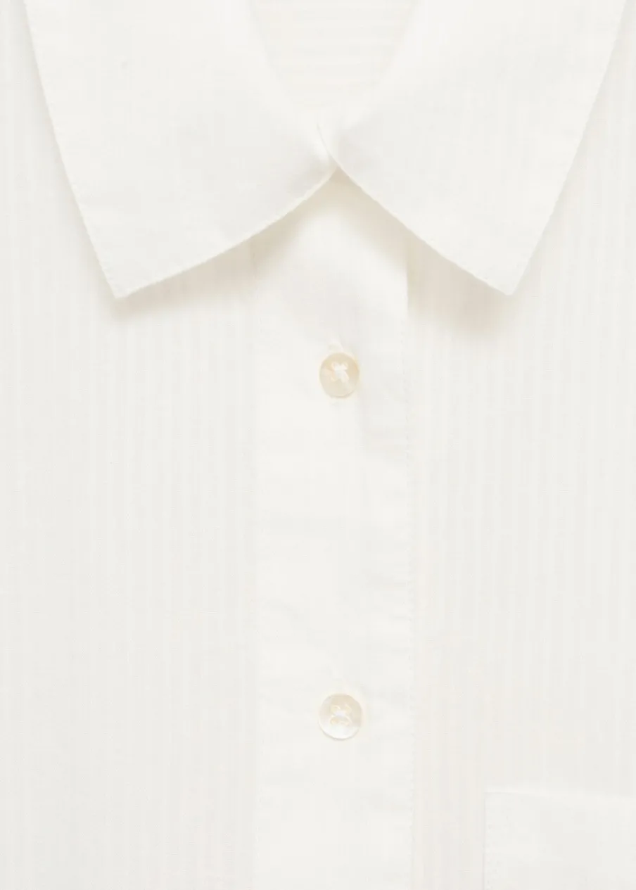Opis100% bomull. Pasiasta tekstura. Model prosty. Koszulowy kołnierz. Długi rękaw z guzikami na mankietach. Zapię…