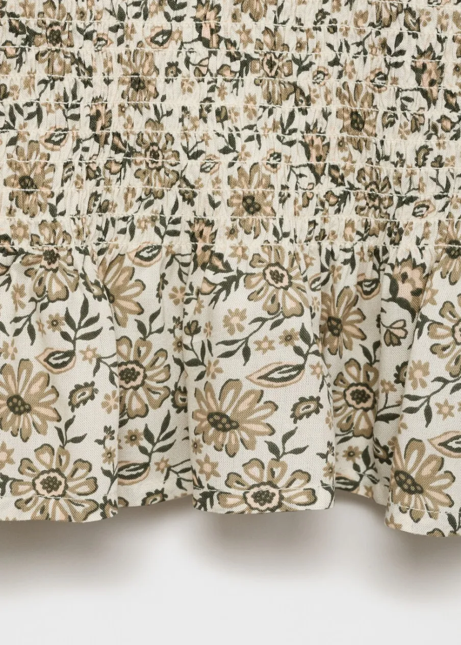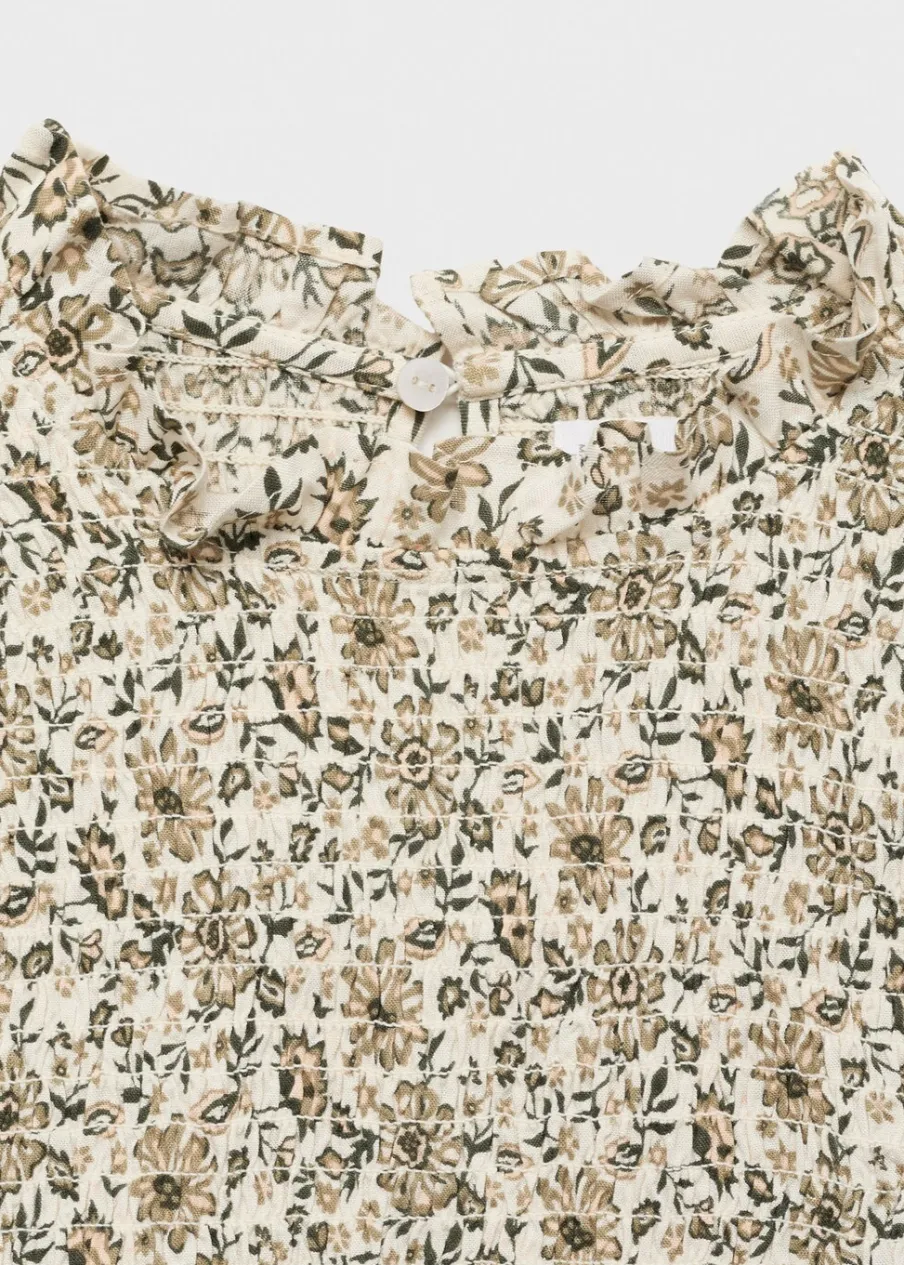 OpisModel prosty. Kwiatowy wzór. Marszczony detal. Okrągły dekolt. Długi rękaw. Zapięcie na guzik z tyłu. Modelka…