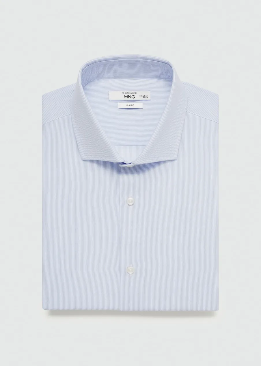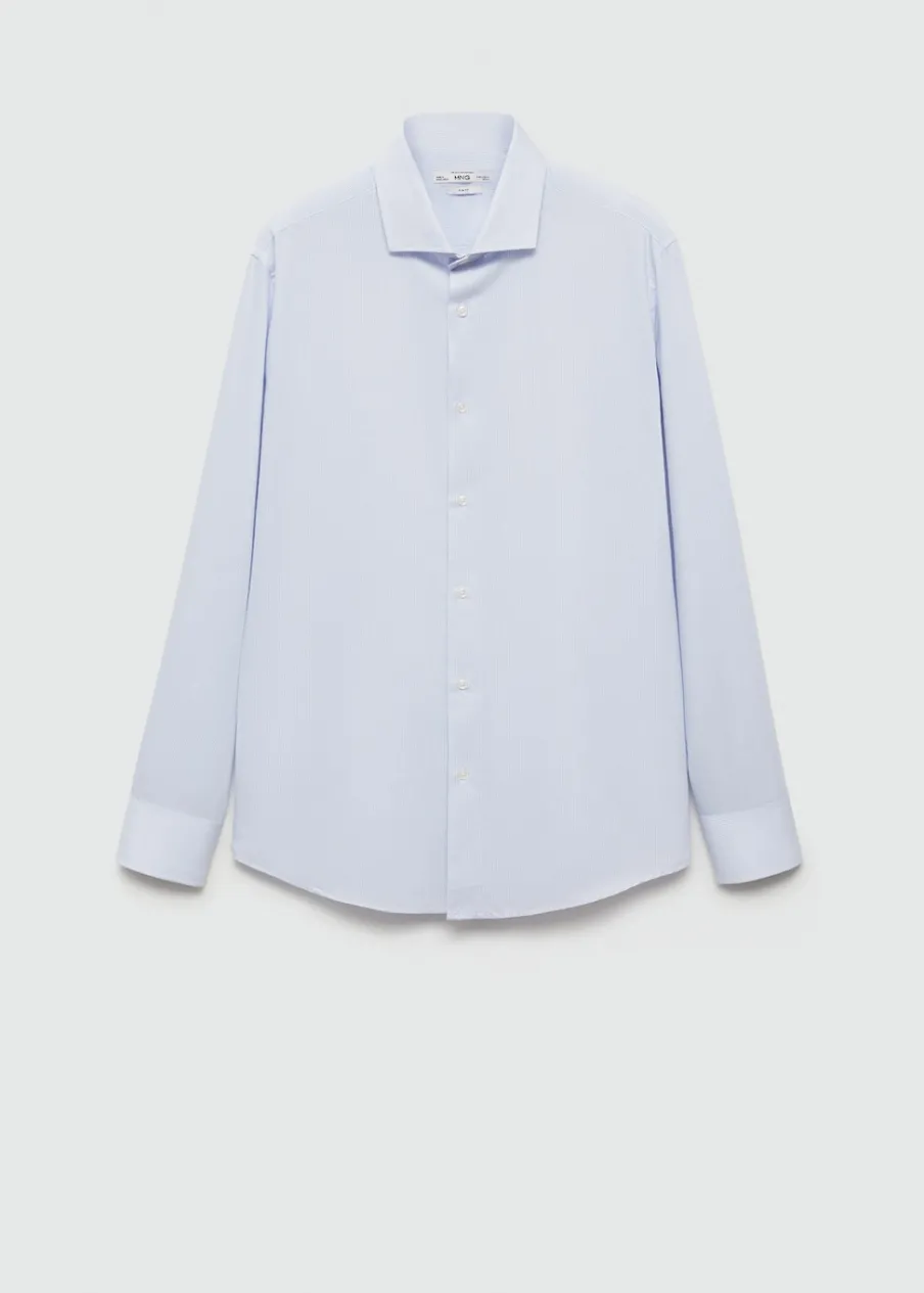 OpisBawełna 100%. Diagonal. Slim-fit. Wzór w drobne paseczki. Kołnierzyk włoski. Zapięcie z przodu na guziki. Model…