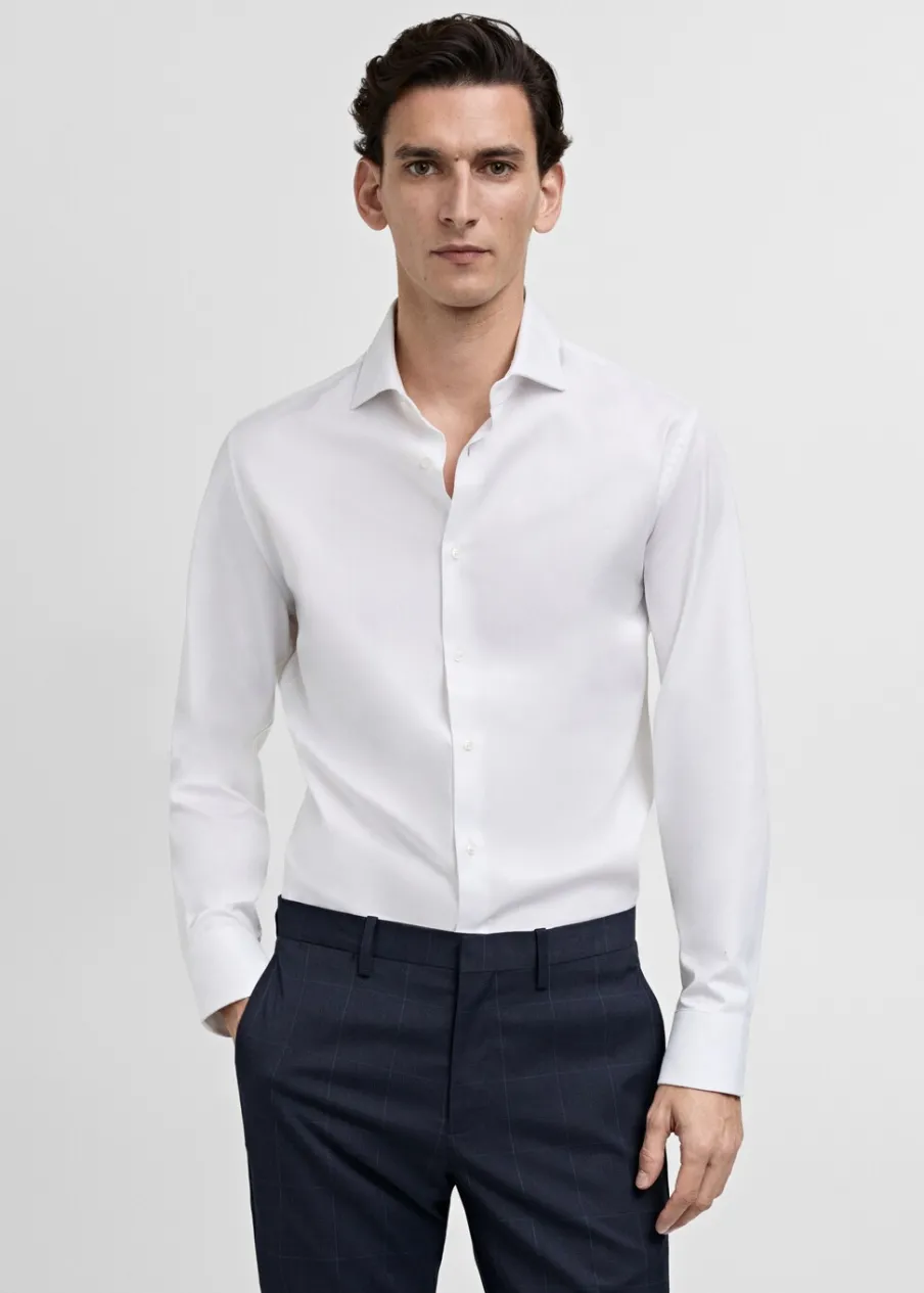 Slim-fit. Bawełna 100%. Zapięcie na guziki. Koszulowy kołnierz. Zapinane mankiety. Zaokrąglony dół. Model ma 185 cm wzrostu i nosi rozmiar M.