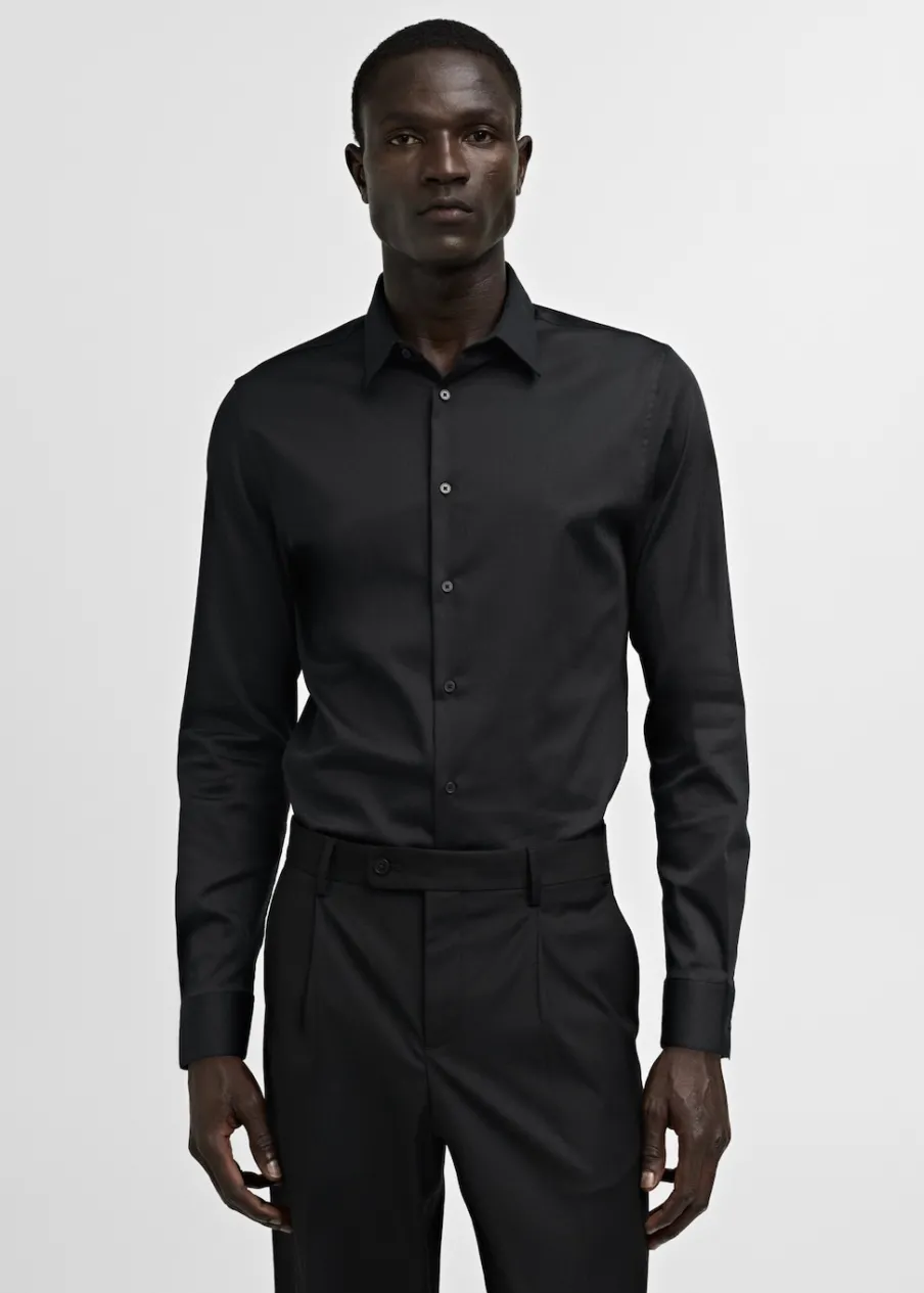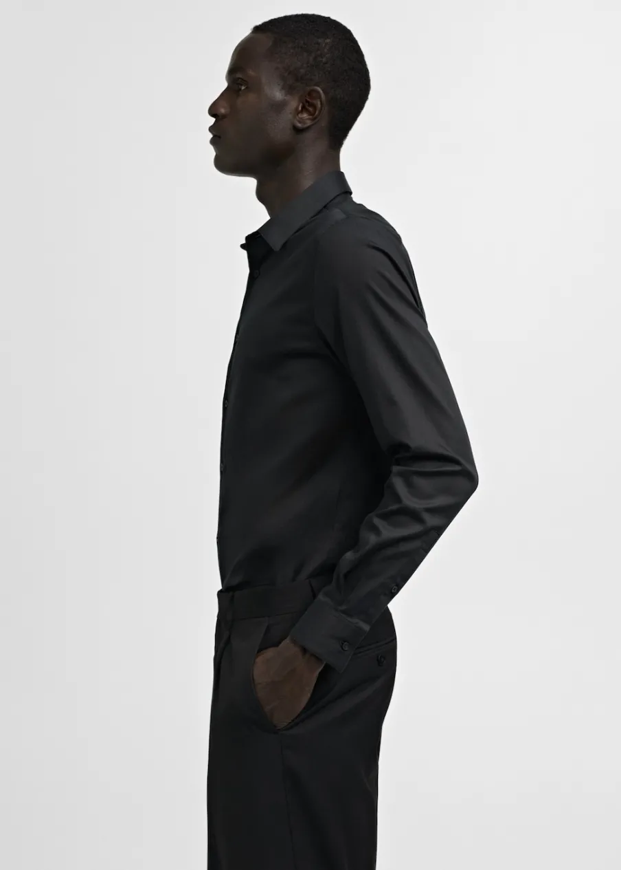 OpisSuper slim-fit. Tkanina z bawełnianej popeliny. Bawełniana tkanina stretch. Długi rękaw z guzikami na mankietach…