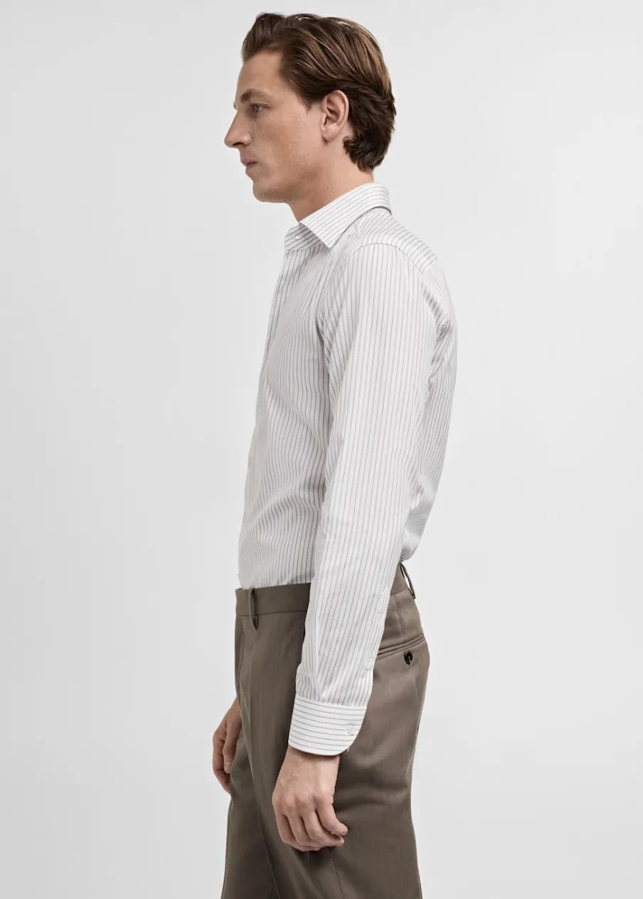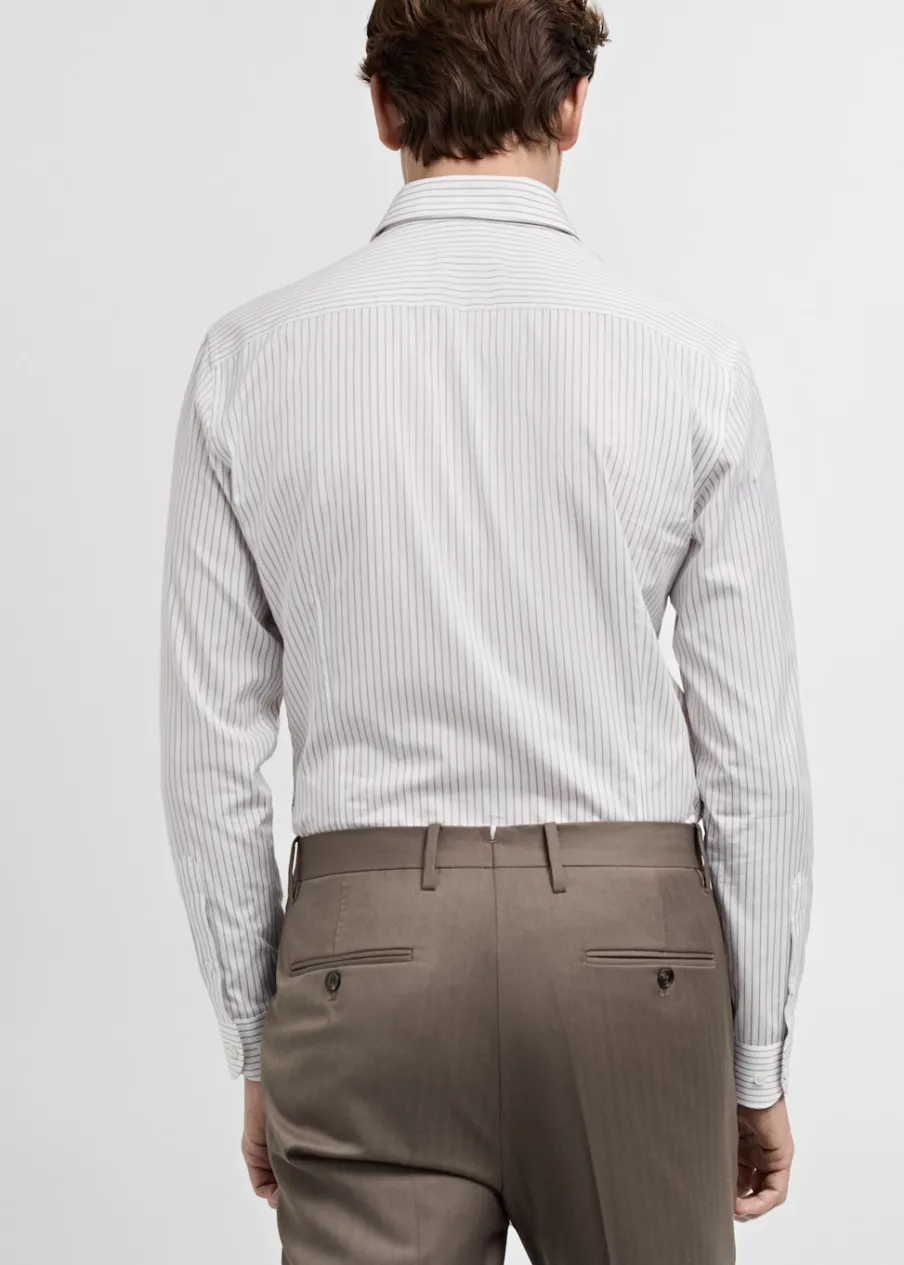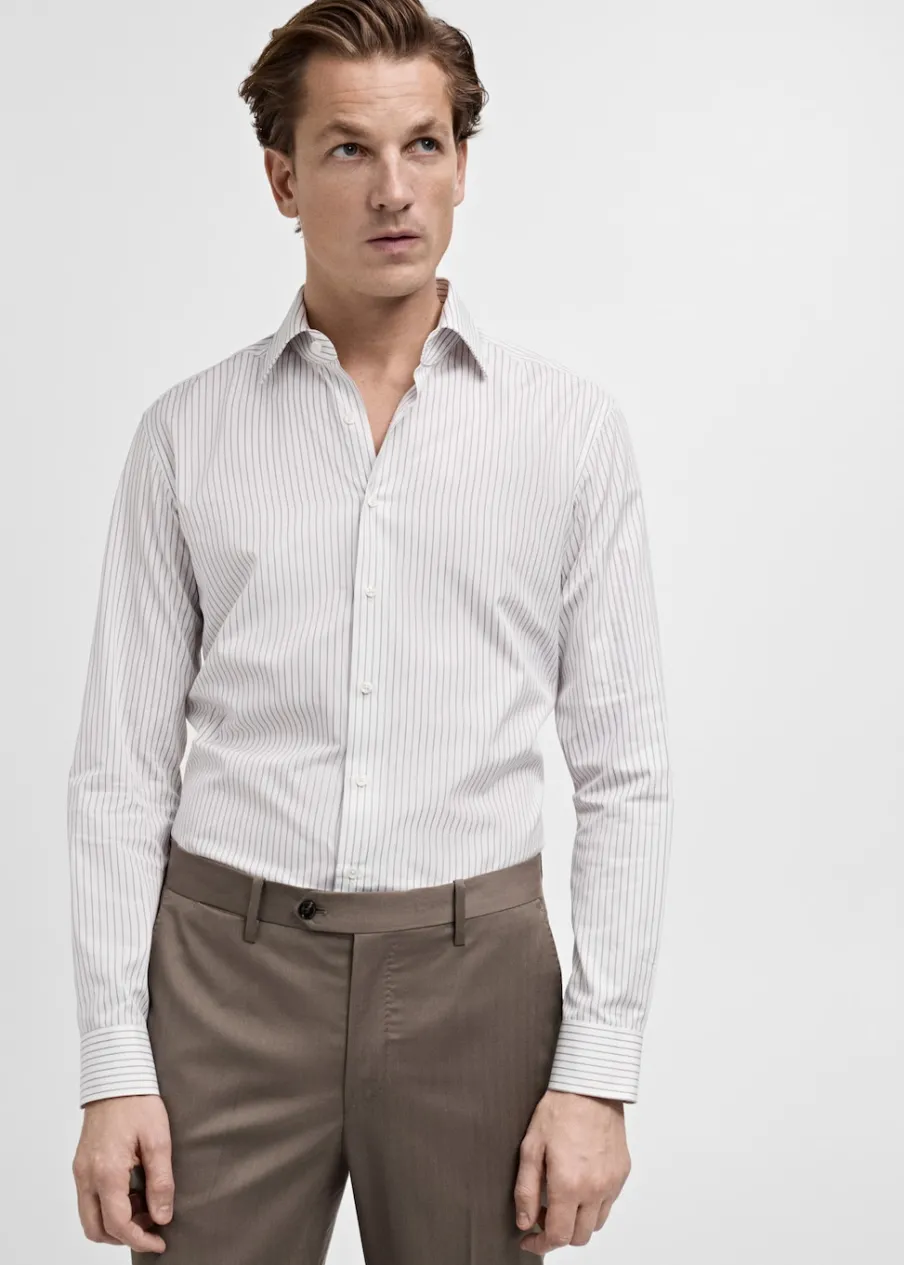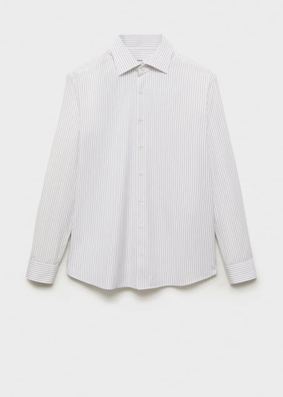 Tkanina z 100% bawełny. Nadruk: paski. Slim-fit. Koszulowy kołnierz. Zapięcie na guziki. Zapinane mankiety. Zaokrąglony dół. Model ma 185 cm wzrostu i nosi rozmiar M.