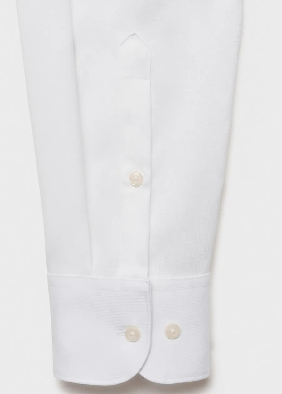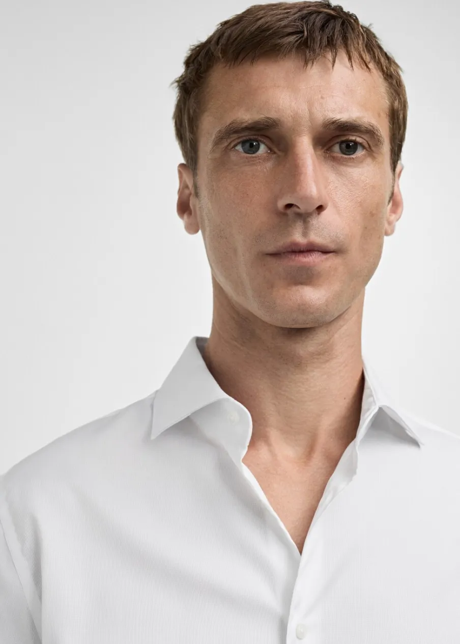 Slim-fit. Wrinkle free: niegniotąca się tkanina. Comfort stretch: elastyczna tkanina dla większego komfortu. Można prać w pralce. Tkanina z 100% bawełny. Termoregulacyjna: ta tkanina zapewnia optymalną przepuszczalność powietrza, by utrzymać stałą temperaturę ciała. Klasyczny kołnierzyk. Zapięcie na guziki z przodu. Długi rękaw z zapięciem na guziki. Zaokrąglony dół. Model ma 180 cm wzrostu i nosi rozmiar M. Komfort: to ubranie zapewnia pełną swobodę ruchu i odzyskuje swój pierwotny kształt.