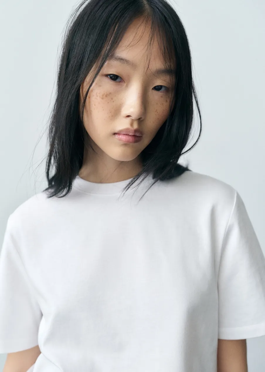 Cienka tkanina. Model standardowy. Model prosty. Okrągły dekolt. Krótki rękaw. Bez zapięcia.