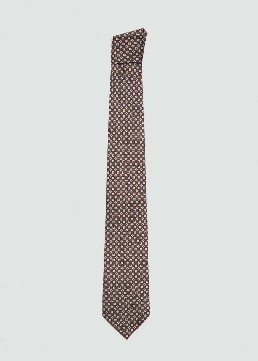 Jedwab 100%. Geometryczny wzór. Wykończenie z mikroteksturą. Szerokość 7 cm.