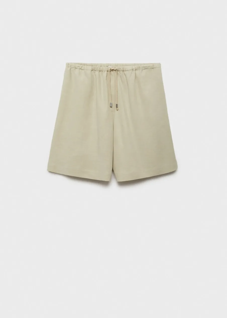 Tkanina mieszana z lnu i lyocellu. Fason wideleg. Dwie kieszenie boczne. Elastyczny pas z wiązanym zapięciem. Total look.