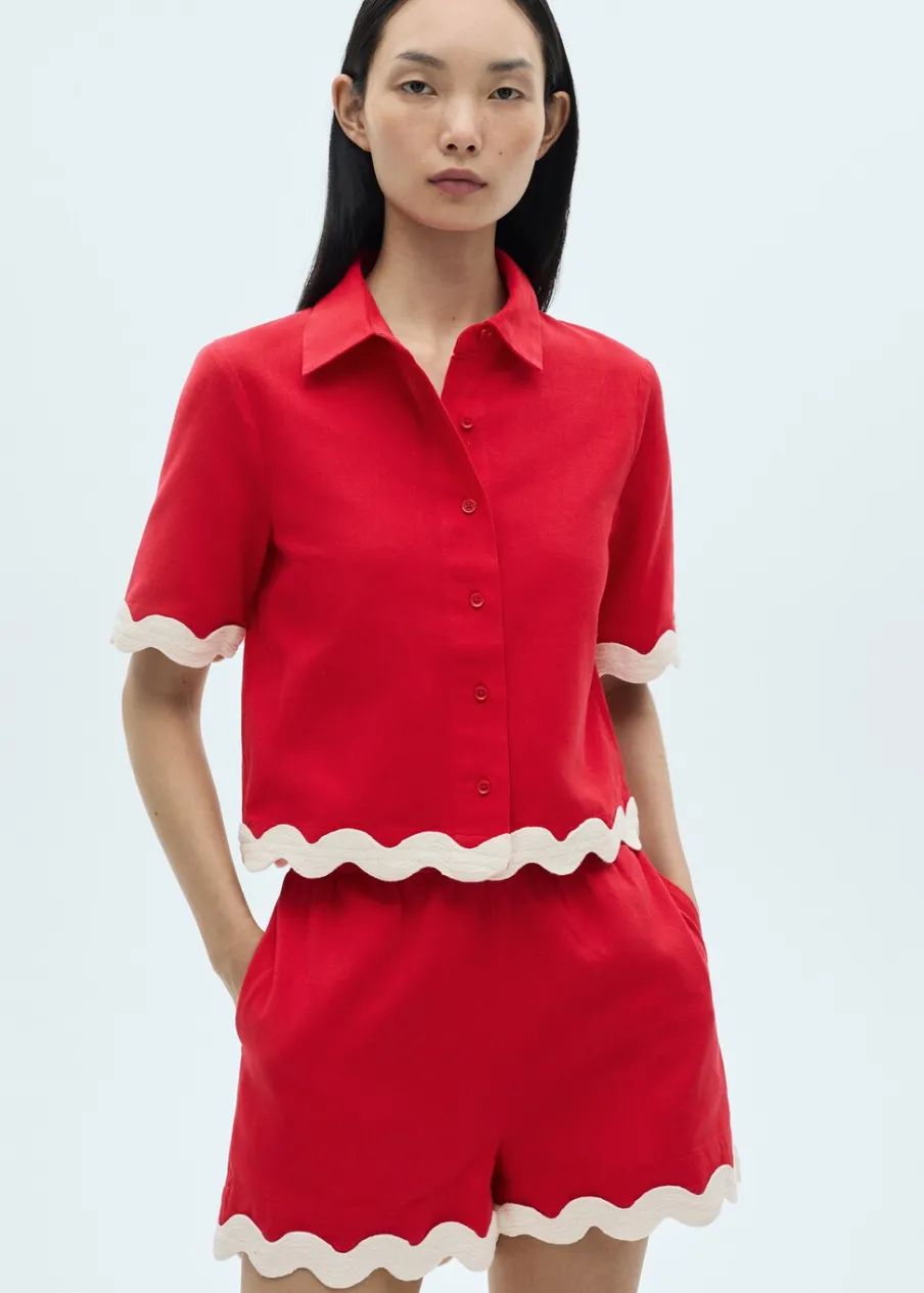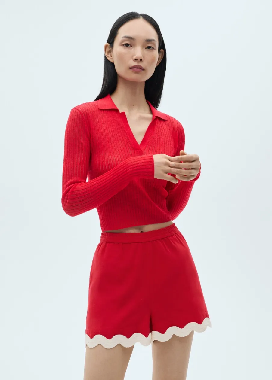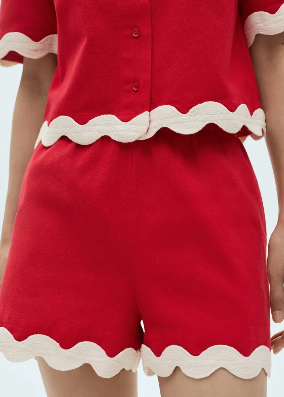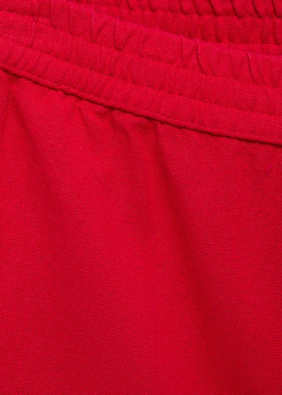 Tkanina z 100% bawełny. Cienka tkanina. Deseń crop. Model prosty. Podwyższony stan. Elastyczny pas. Dwie wpuszczane kieszenie boczne. Bez zapięcia. Kontrastowe wykończenia.