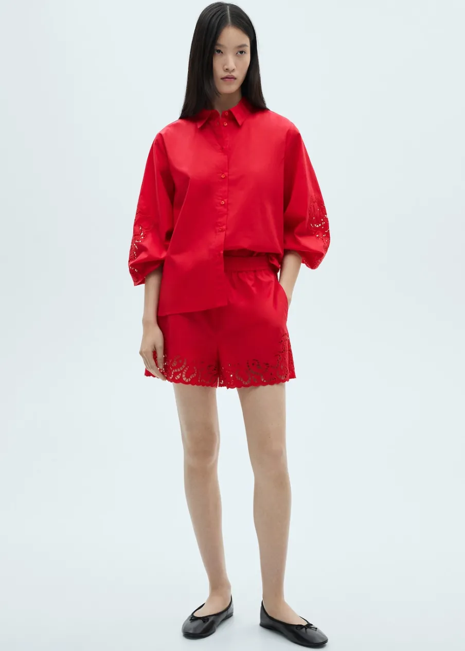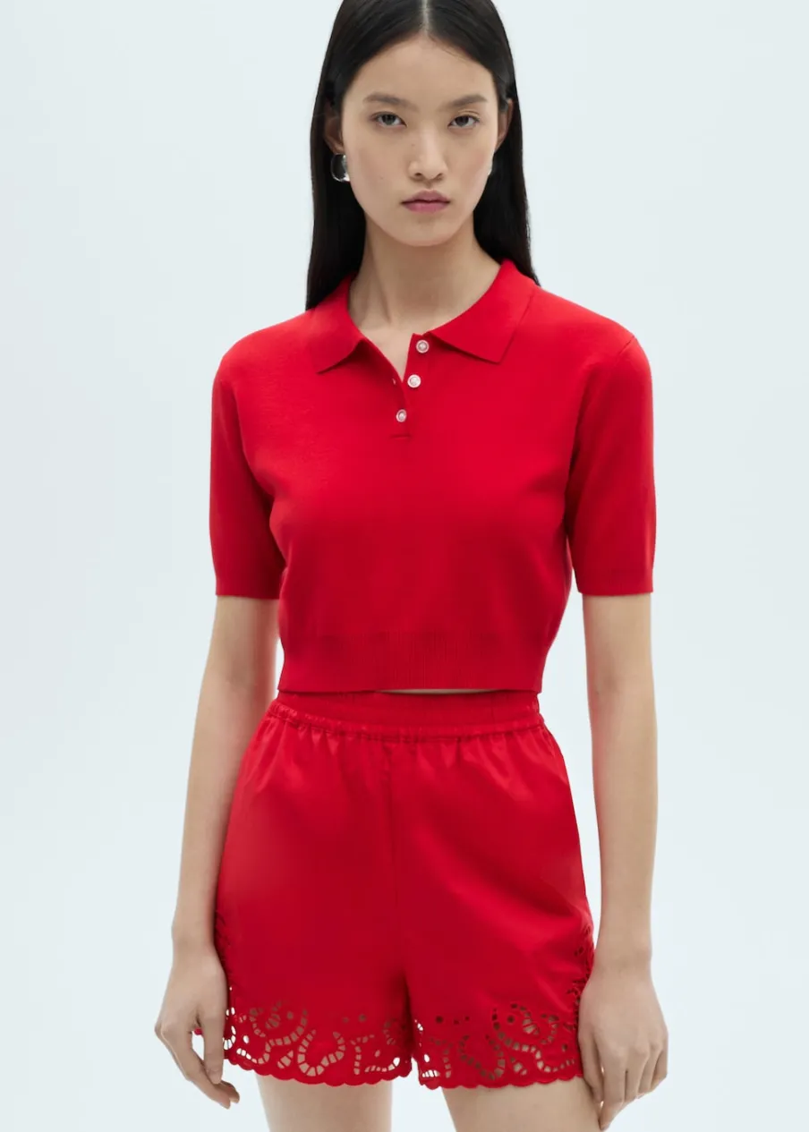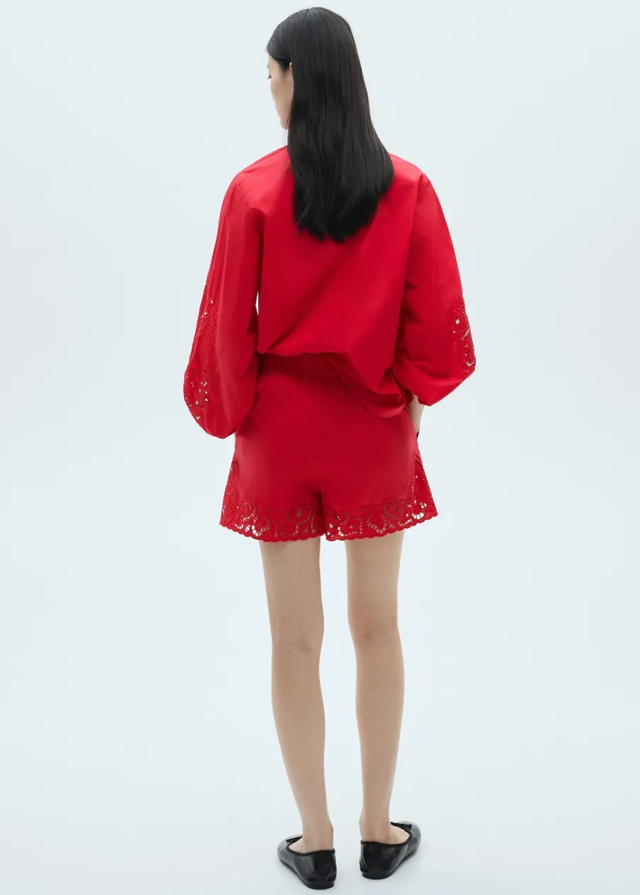 Bawełna 100%. Krótki krój. Elastyczny pas. Bez zapięcia. Ażurowe detale. Total look.
