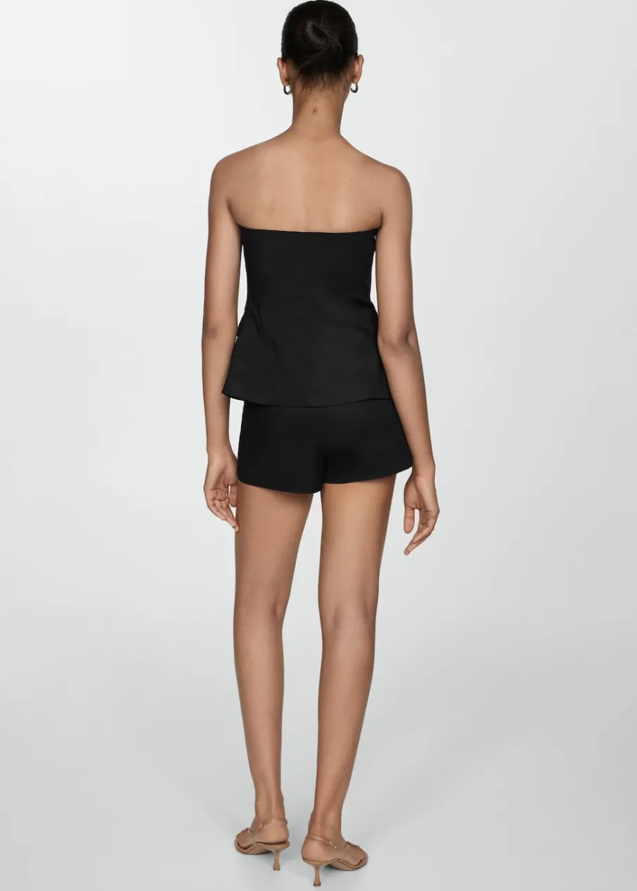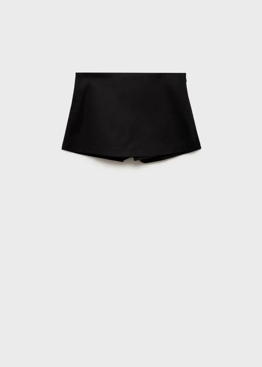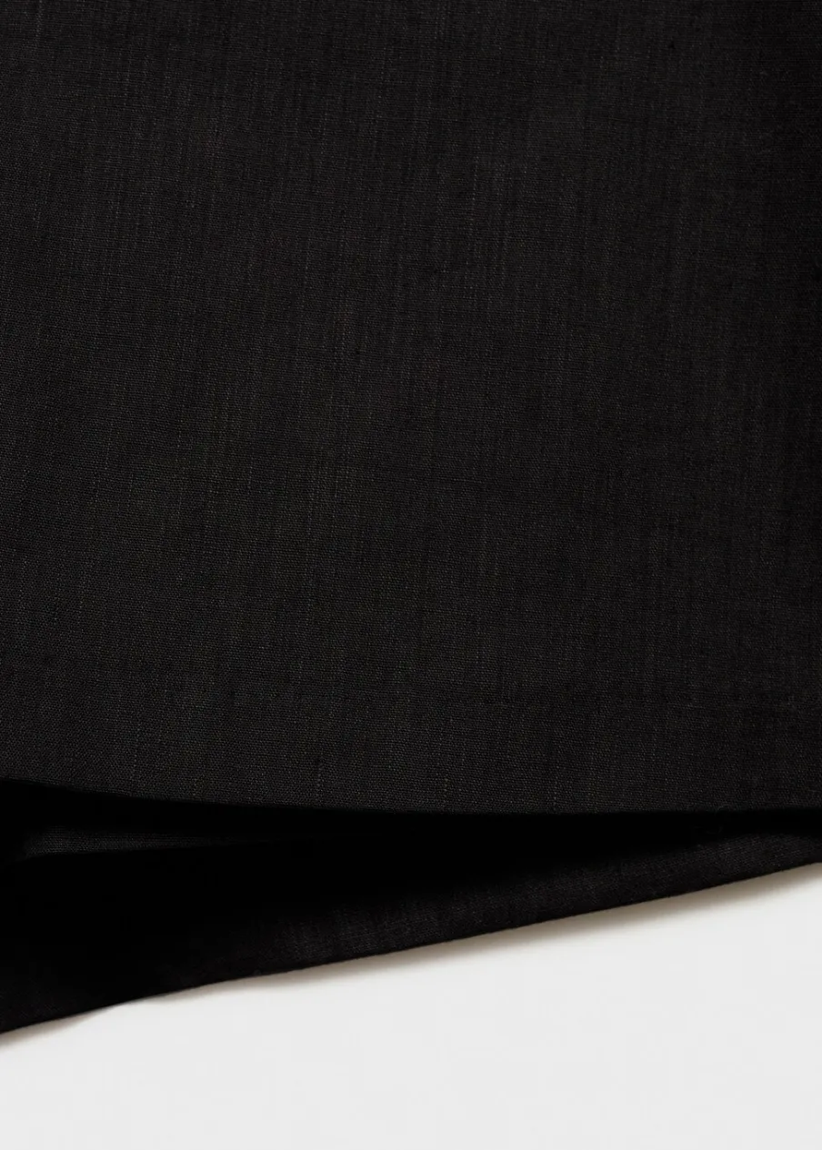Tkanina mieszanka bawełny i lnu. Średni stan. Fason spódnicospodni. Krótki krój. Model prosty. Boczne zapięcie na suwak.